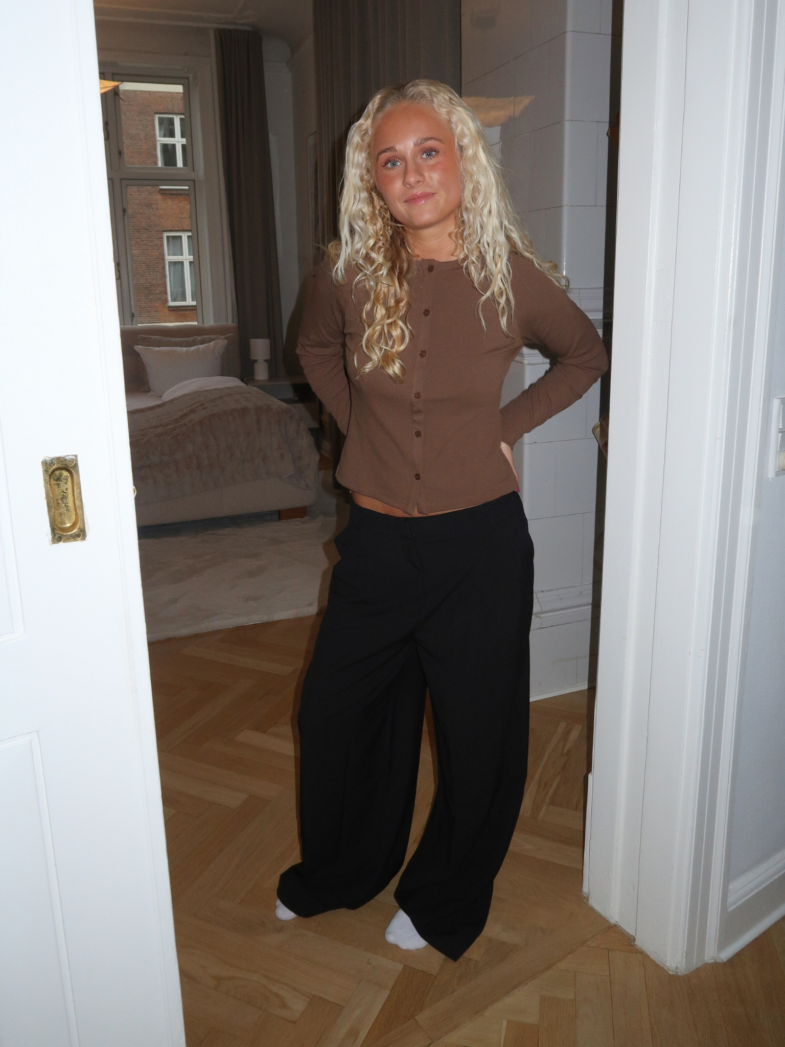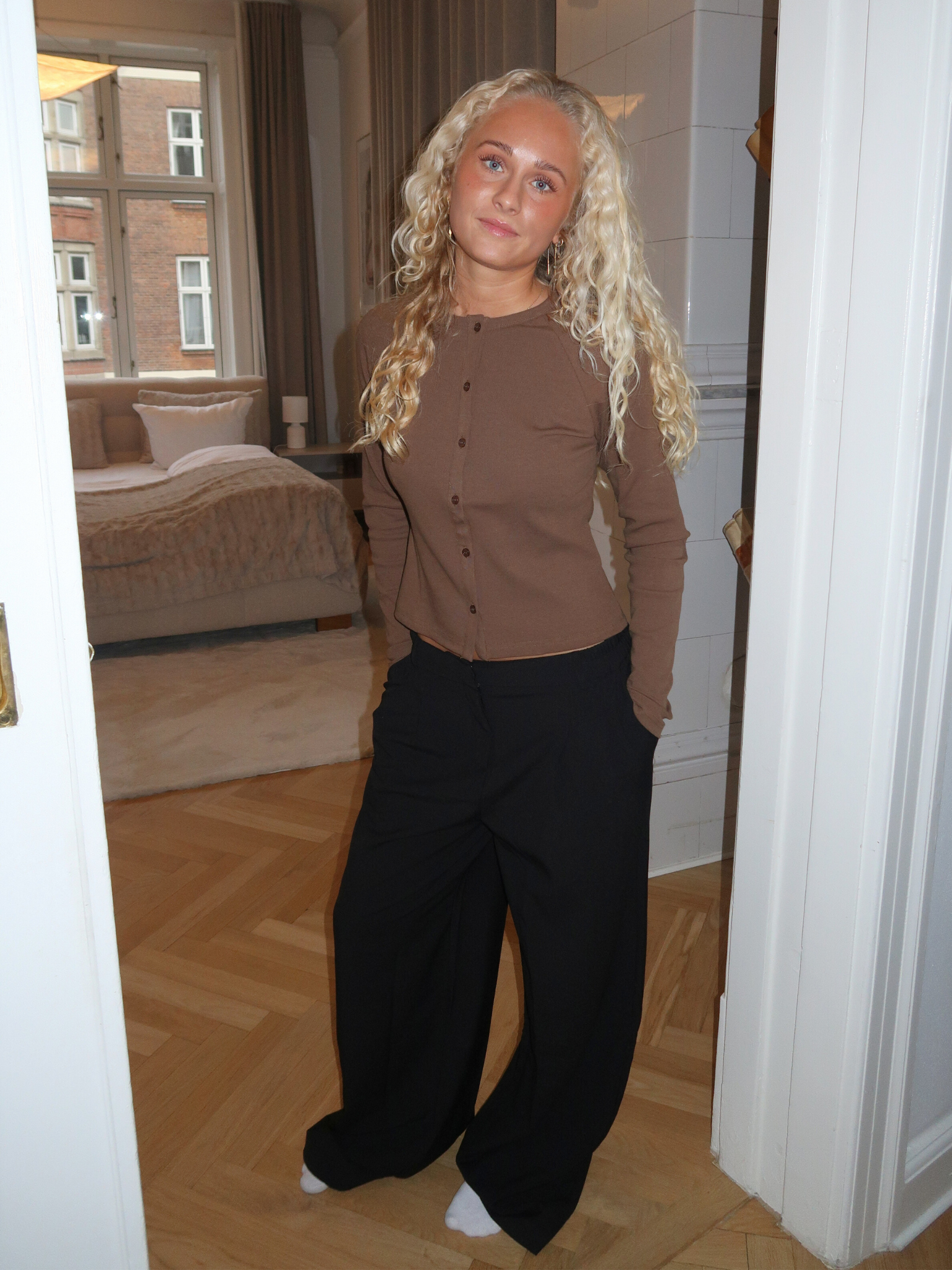Velkommen til vores helt nye suit pant, der er bredere end vores bestseller suit pant Bella. Stadig low-waist, stadig lækker blød og med to sidelommer - perfekt til skole, fest og alt derimellem..