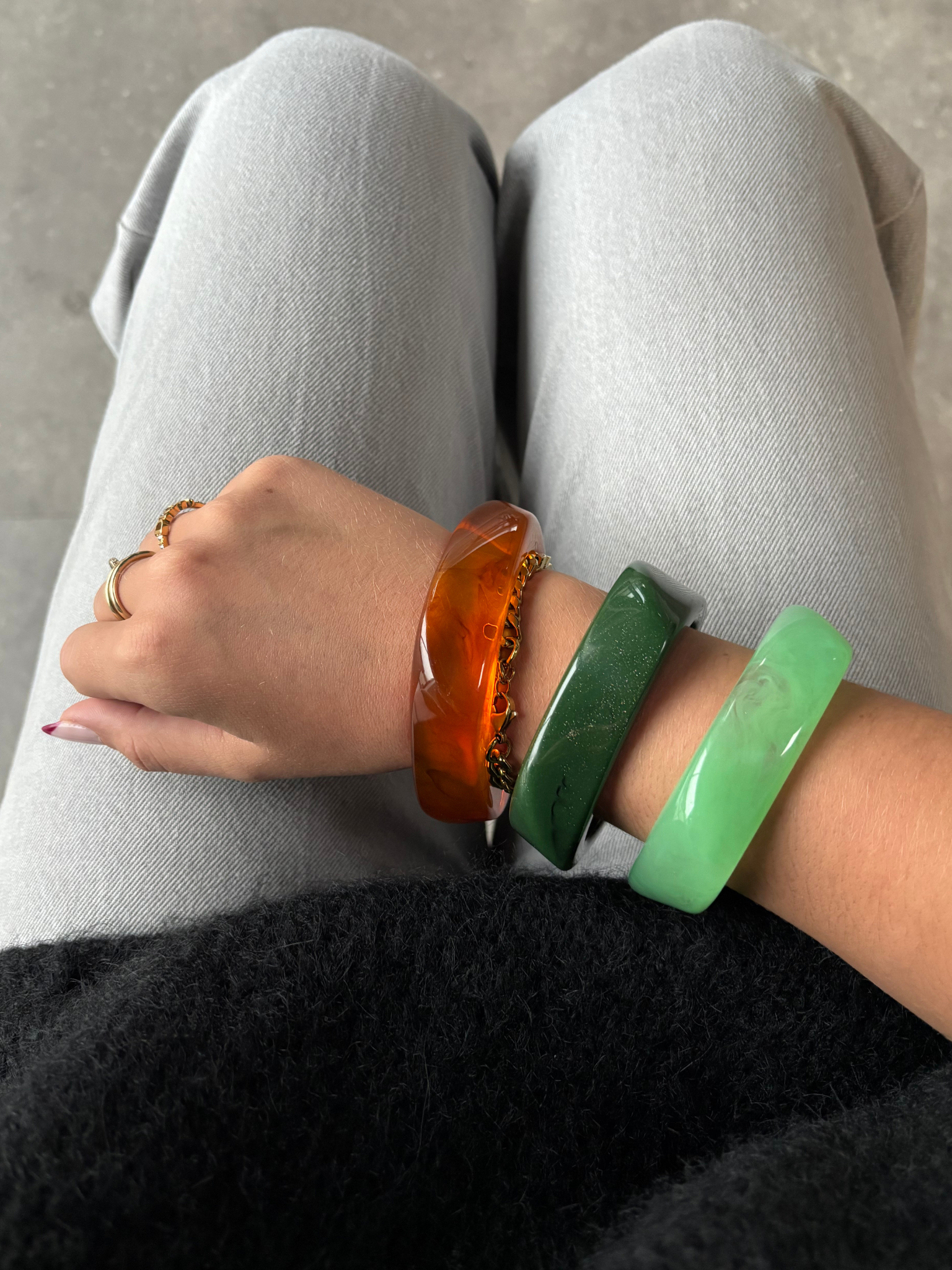 Smukt & trendy armbånd i chunky form. Hvert eneste armbånd er unik og har sine helt egne farve-nuancer. Brug dem til bare arme - eller over din yndlingsskjorte eller strik!