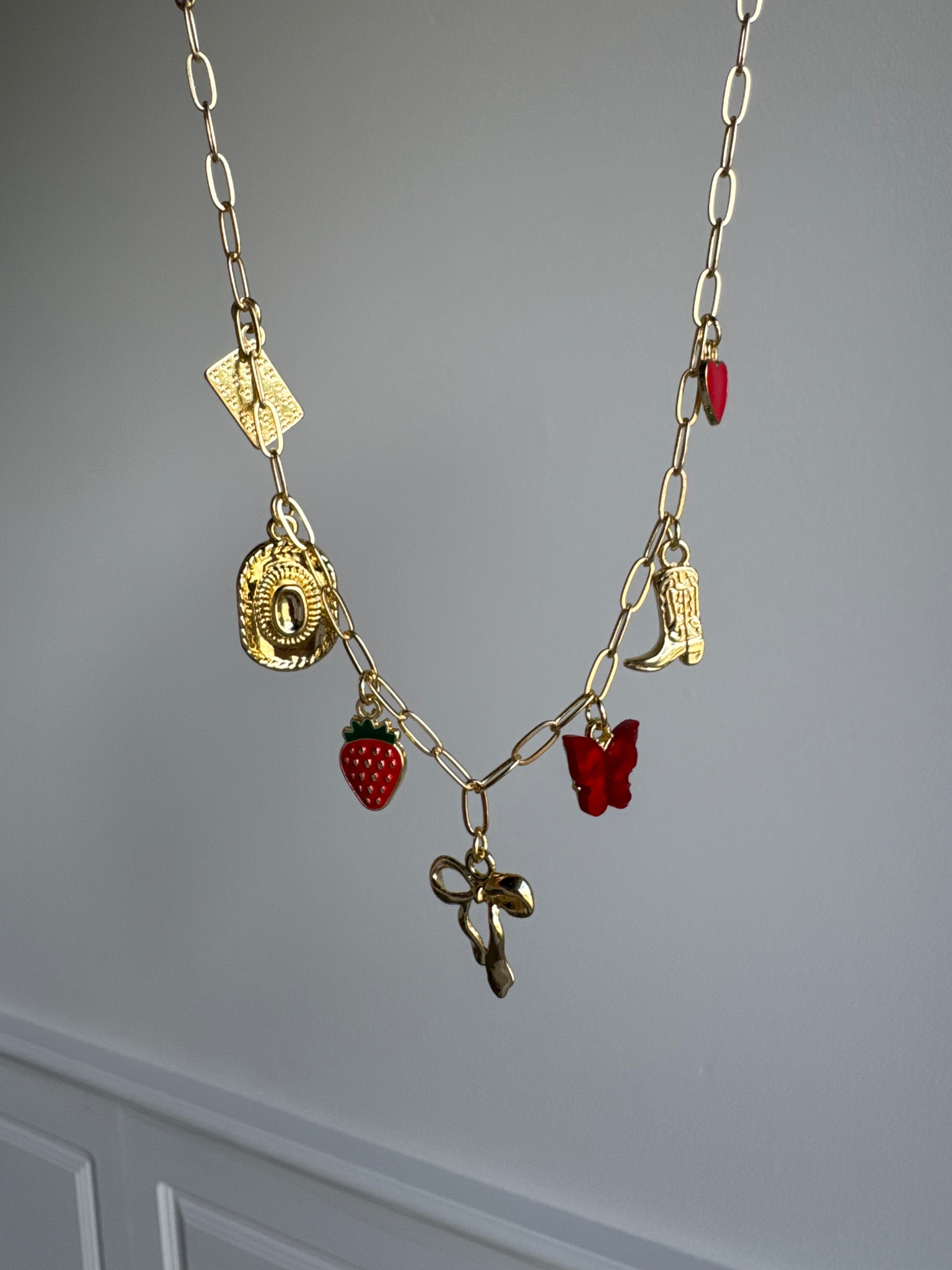 En elegant halskæde med en smuk gylden farve, der tilfører et fint touch til ethvert outfit. Den har en længde på 360 cm og er fremstillet i en kombination af jern, plastik og zink, hvilket giver både styrke og et let udtryk. Halskæden fås i one-size, hvilket gør den nem at style på forskellige måder.