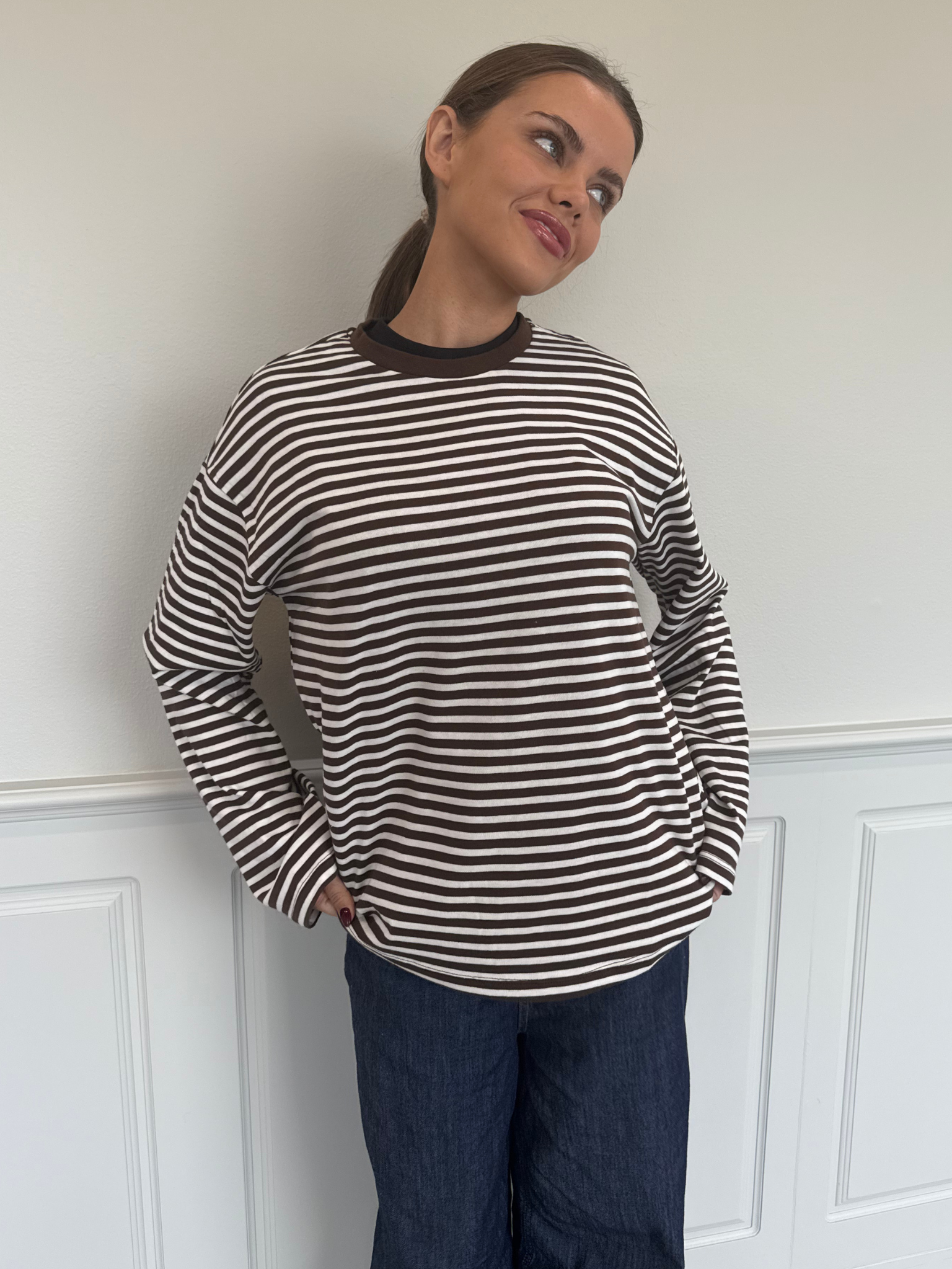 SADIE STRIPE TEE LS - HOT FUDGE COCONUT MILK