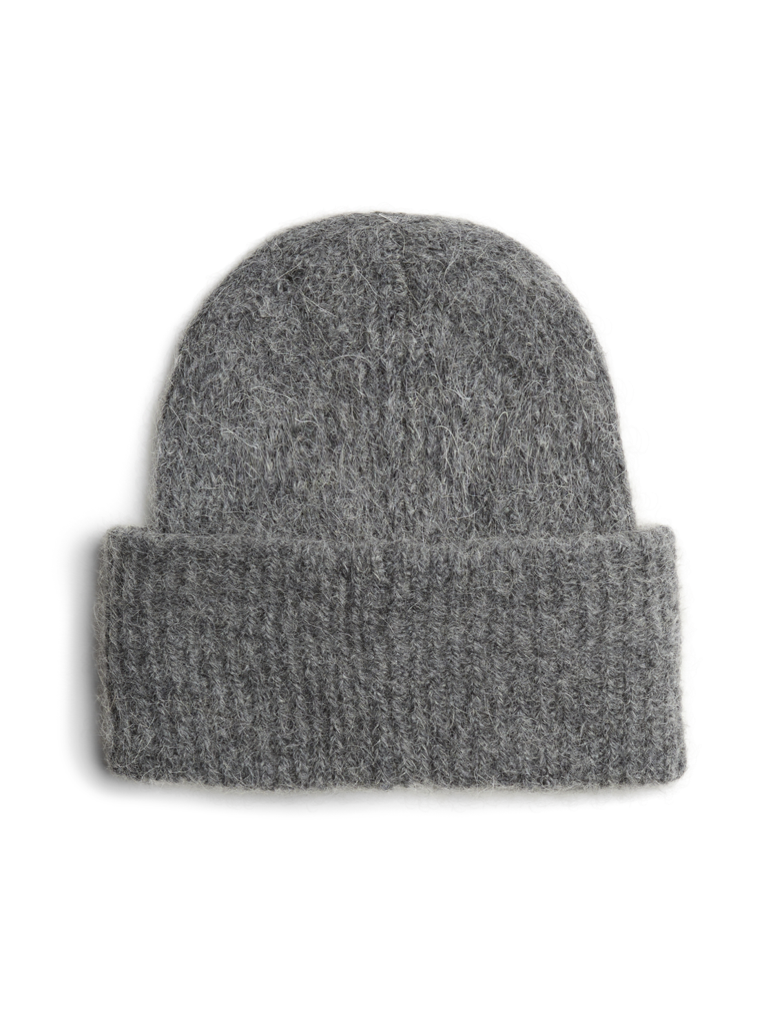 Denne beanie er lavet af en blød og varm blanding, hvor alpaca-fibre kombineres med nylon og akryl for at sikre både komfort og holdbarhed. Den ribstrikkede konstruktion giver et tidløst og afslappet look, der passer perfekt til overgangssæsonerne, når det begynder at blive køligere. Farven medium grey melange gør den nem at style med forskellige efterårs- og vinteroutfits.