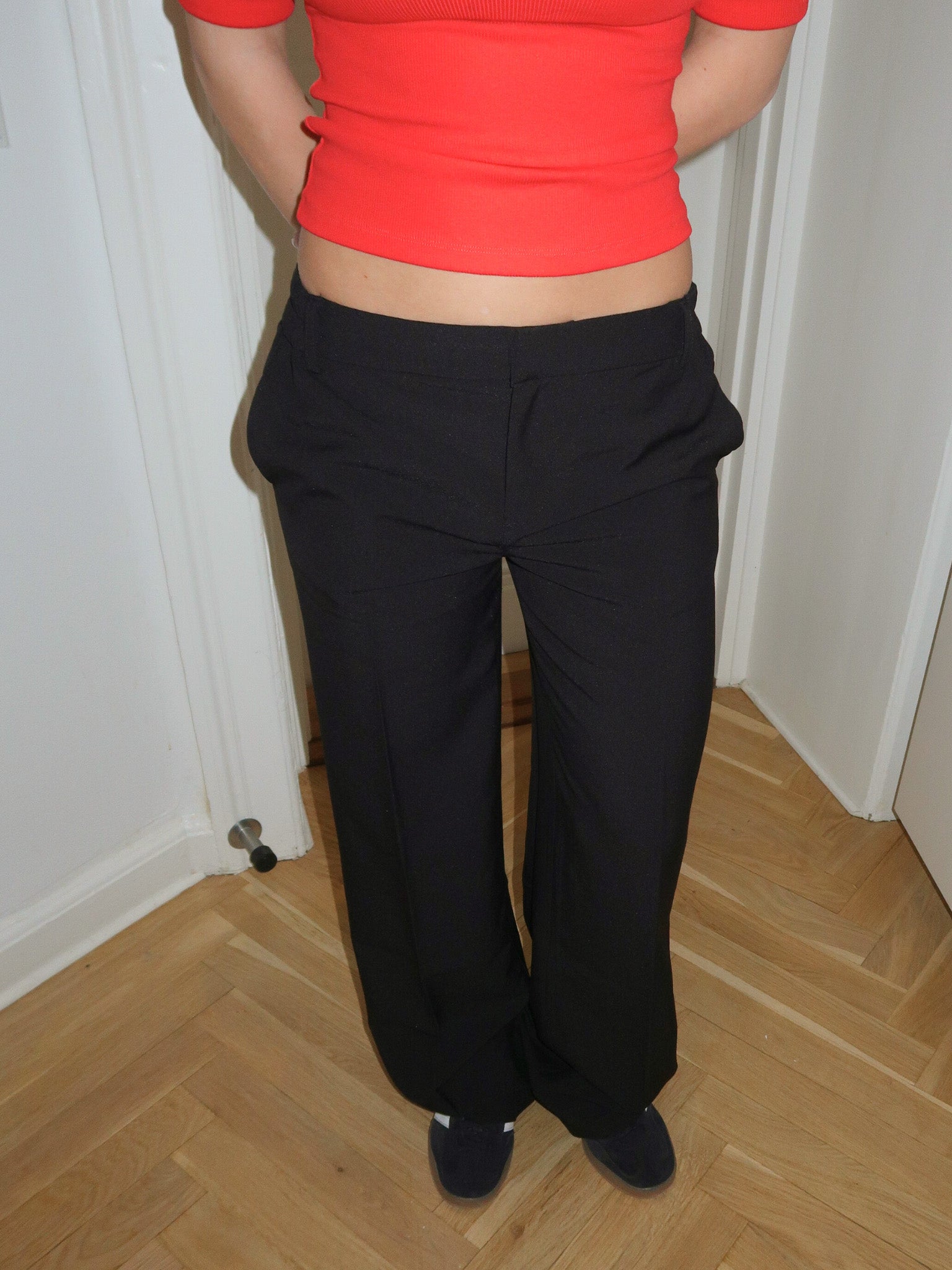 - Pasform: Snatched I taljen, low waist og straight ben