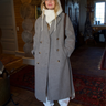 Denne lange frakke kombinerer et klassisk dobbeltradet knaplukning med et bælte, som giver mulighed for en justerbar pasform. Designet med en omvendt halsudskæring og praktiske sidelommer, er den både stilfuld og funktionel. Frakken er fremstillet af polyester, som giver en glat og let overflade, perfekt til at holde dig varm gennem efterår og vinter.