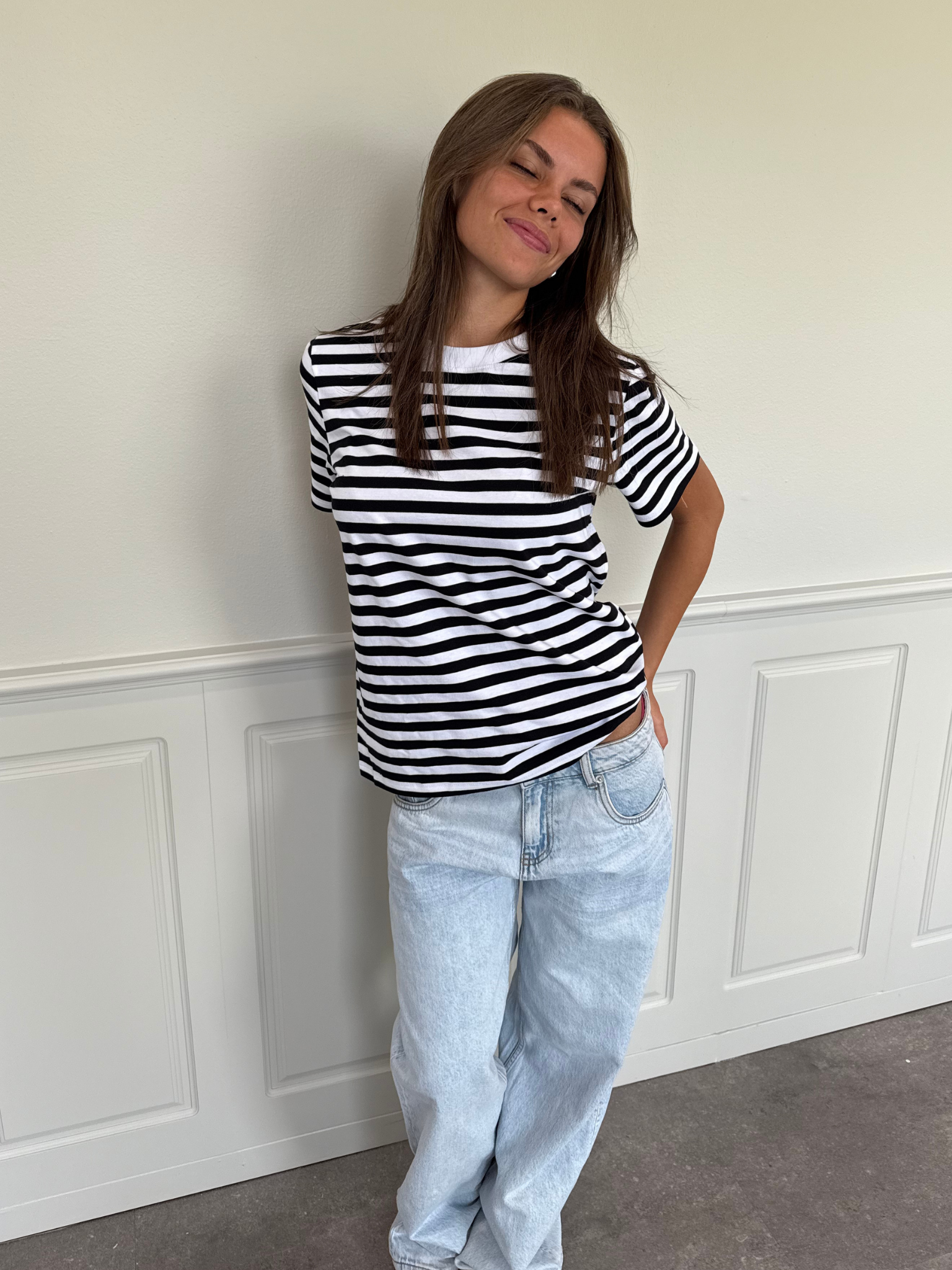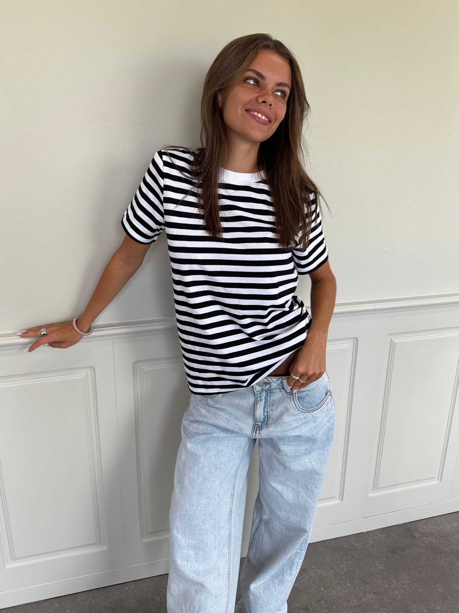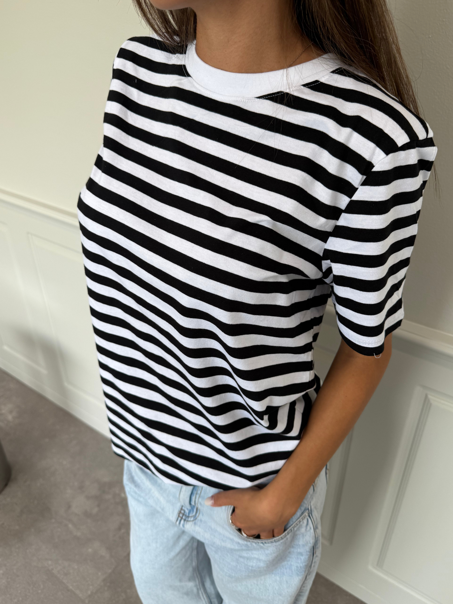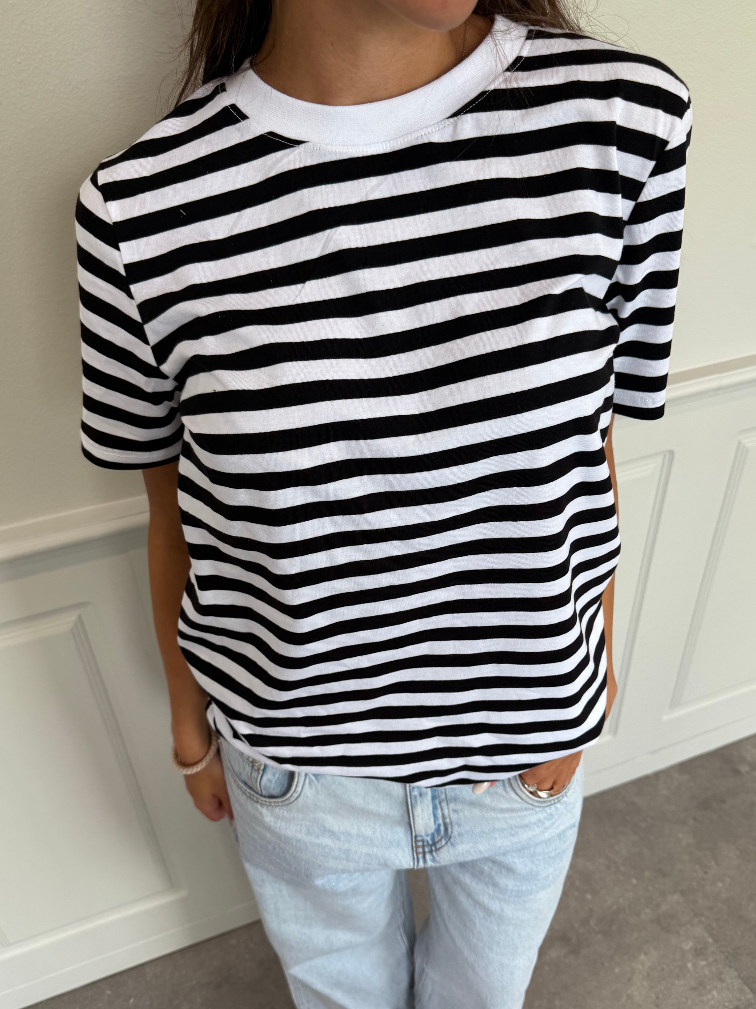 RIA STRIPE TEE - BLACK/BRIGHT WHITE