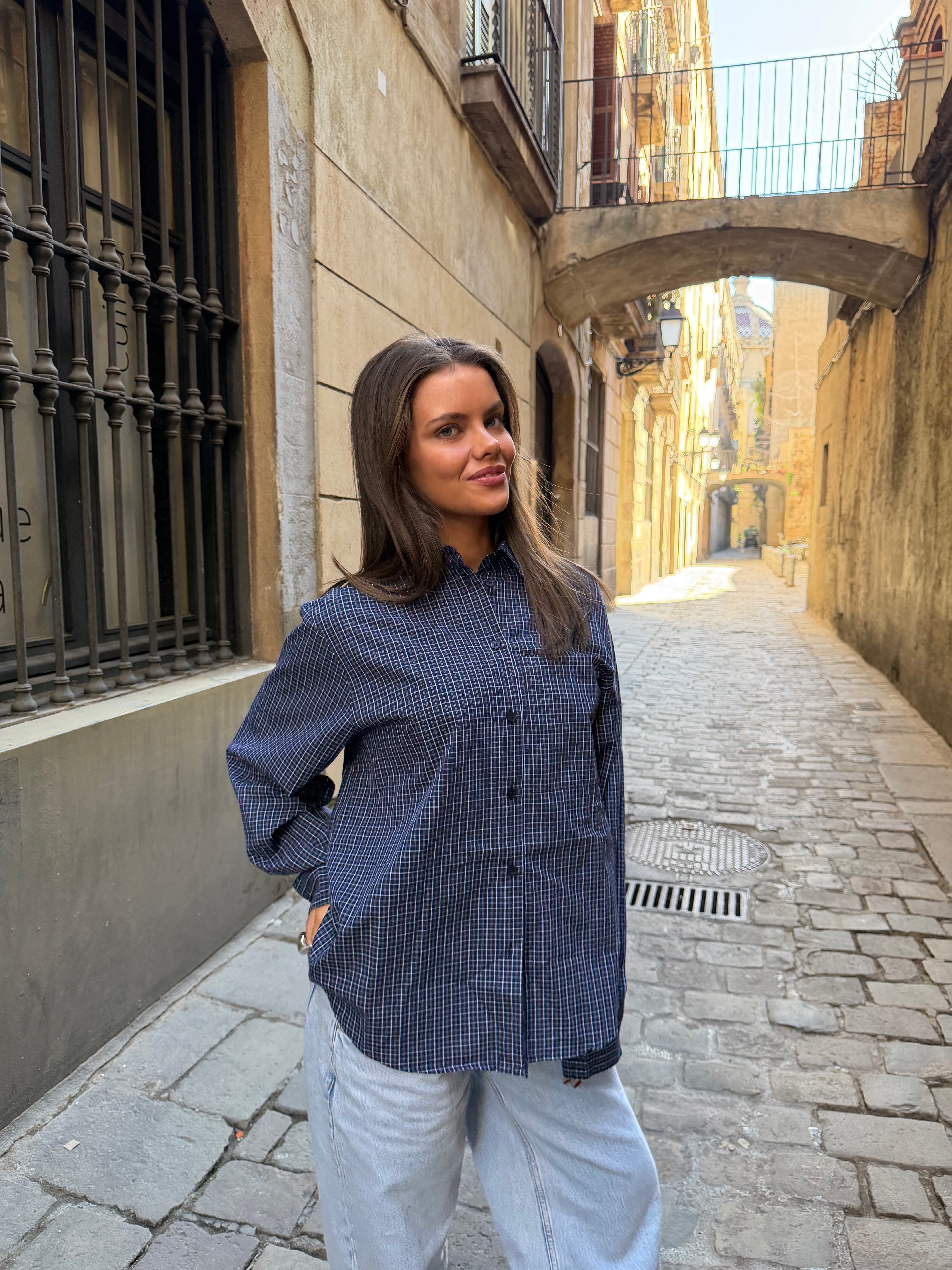 NEO BOXFIT SHIRT - NAVY CHECK