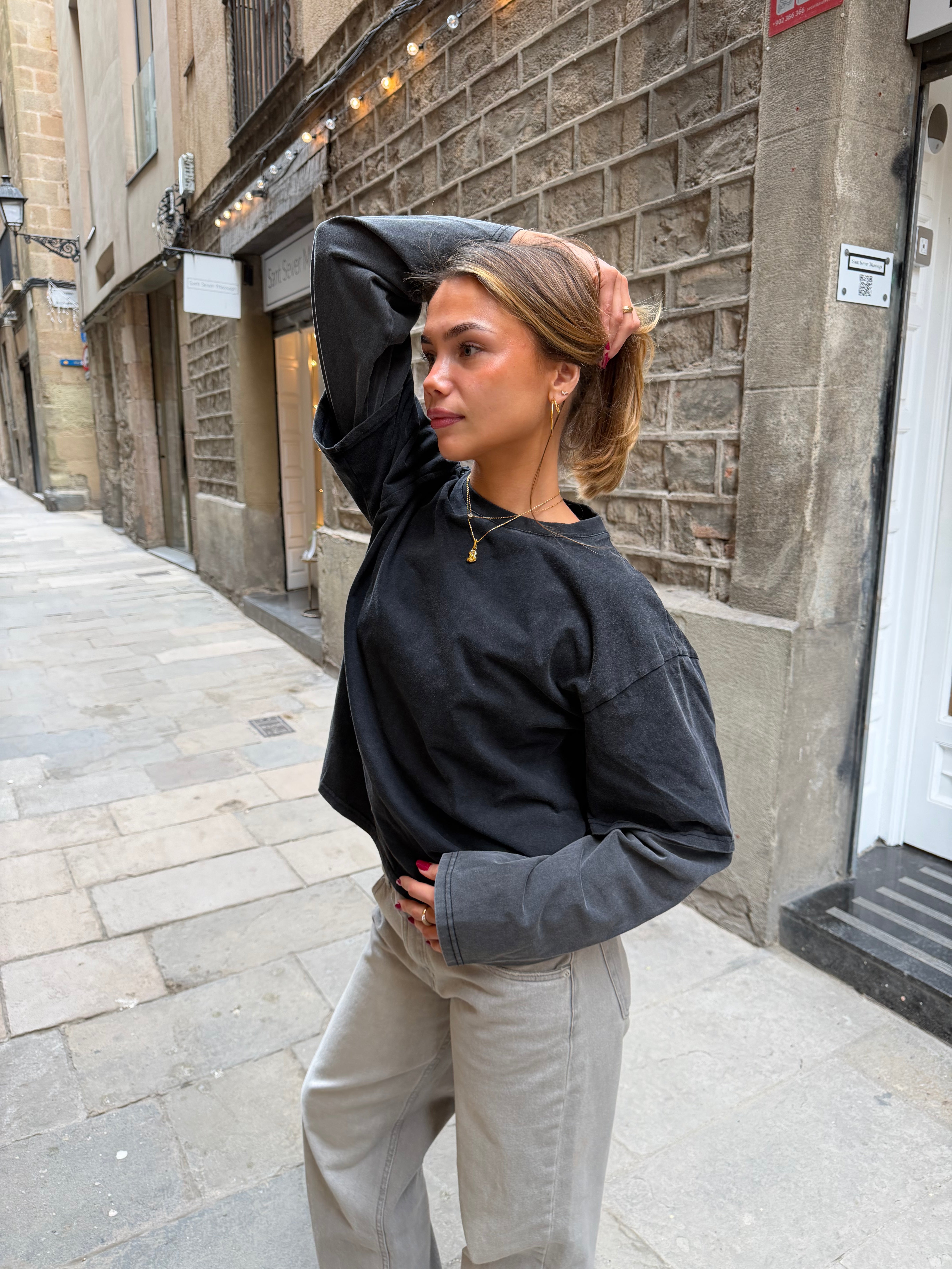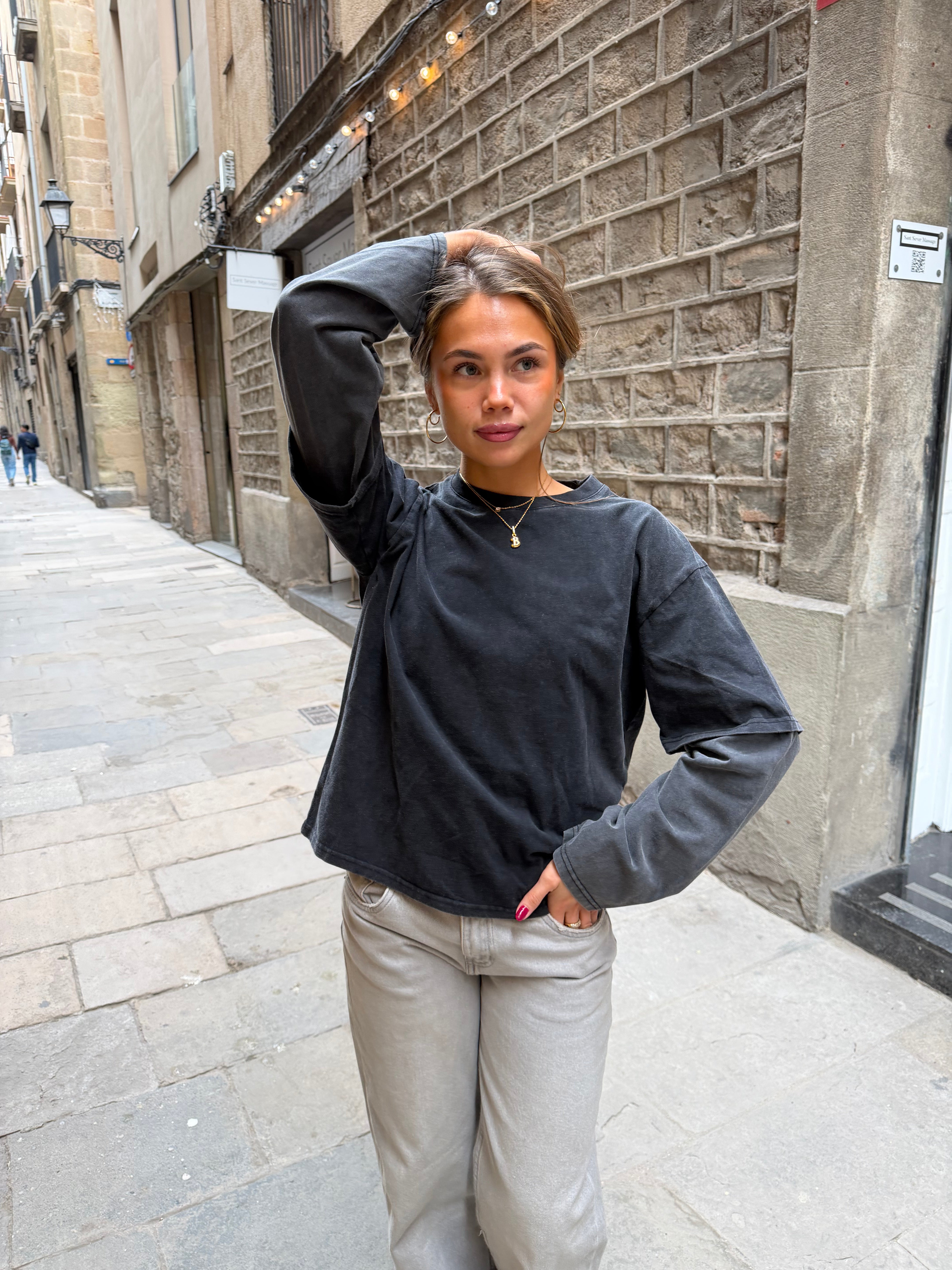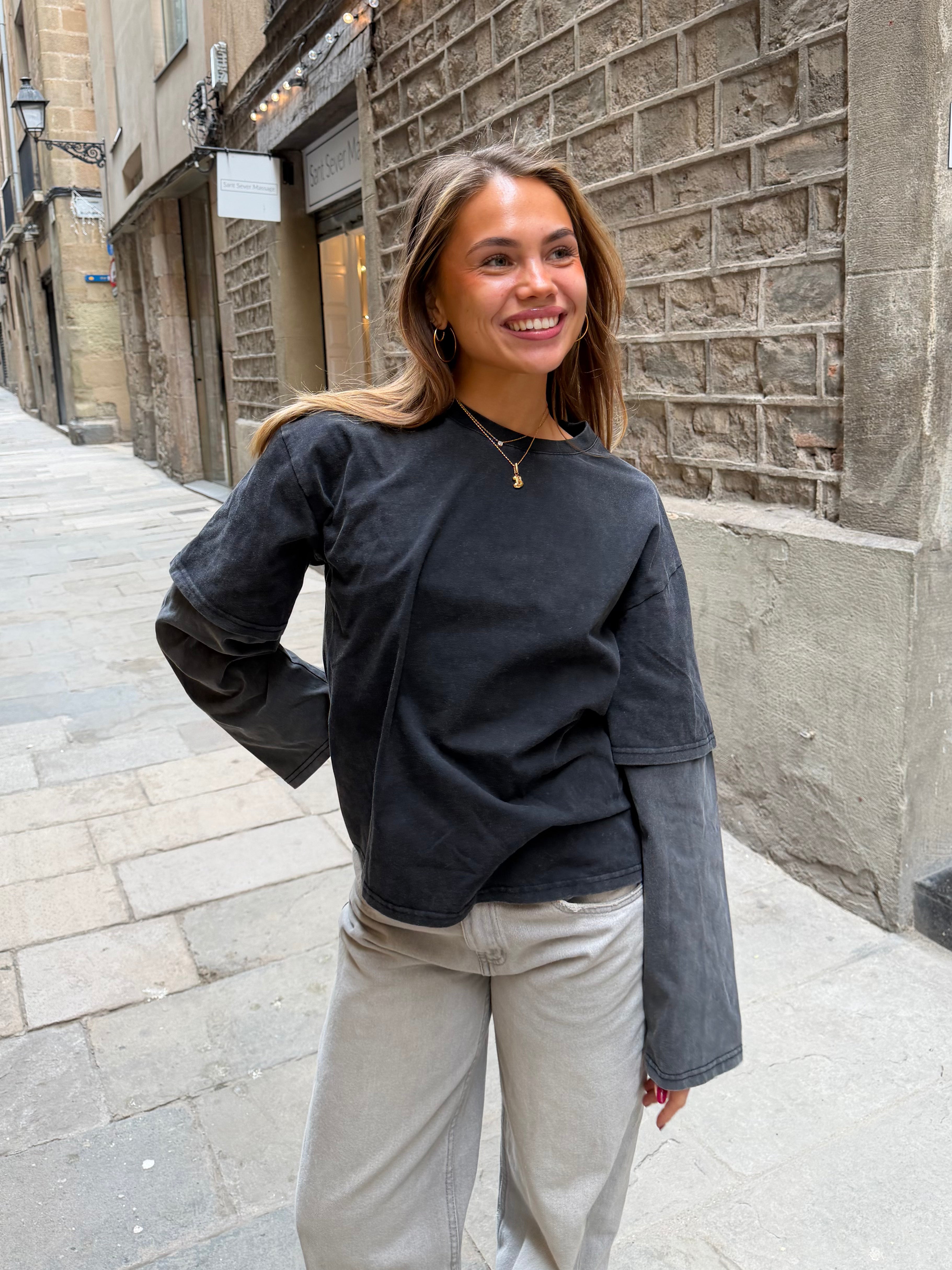 Hjem / ALVIA LAYERED TEE - DK GREY / WASHED BLACK
