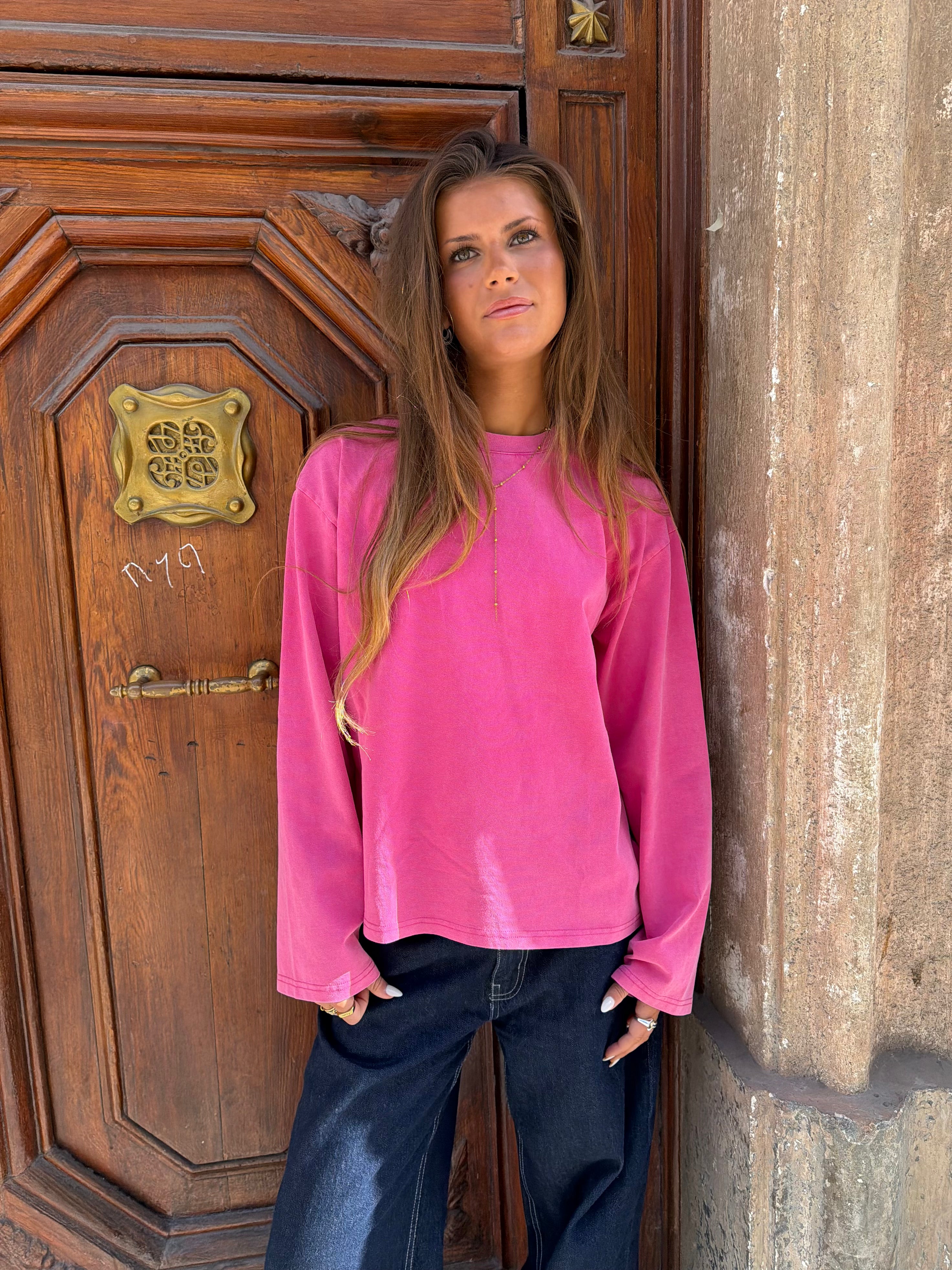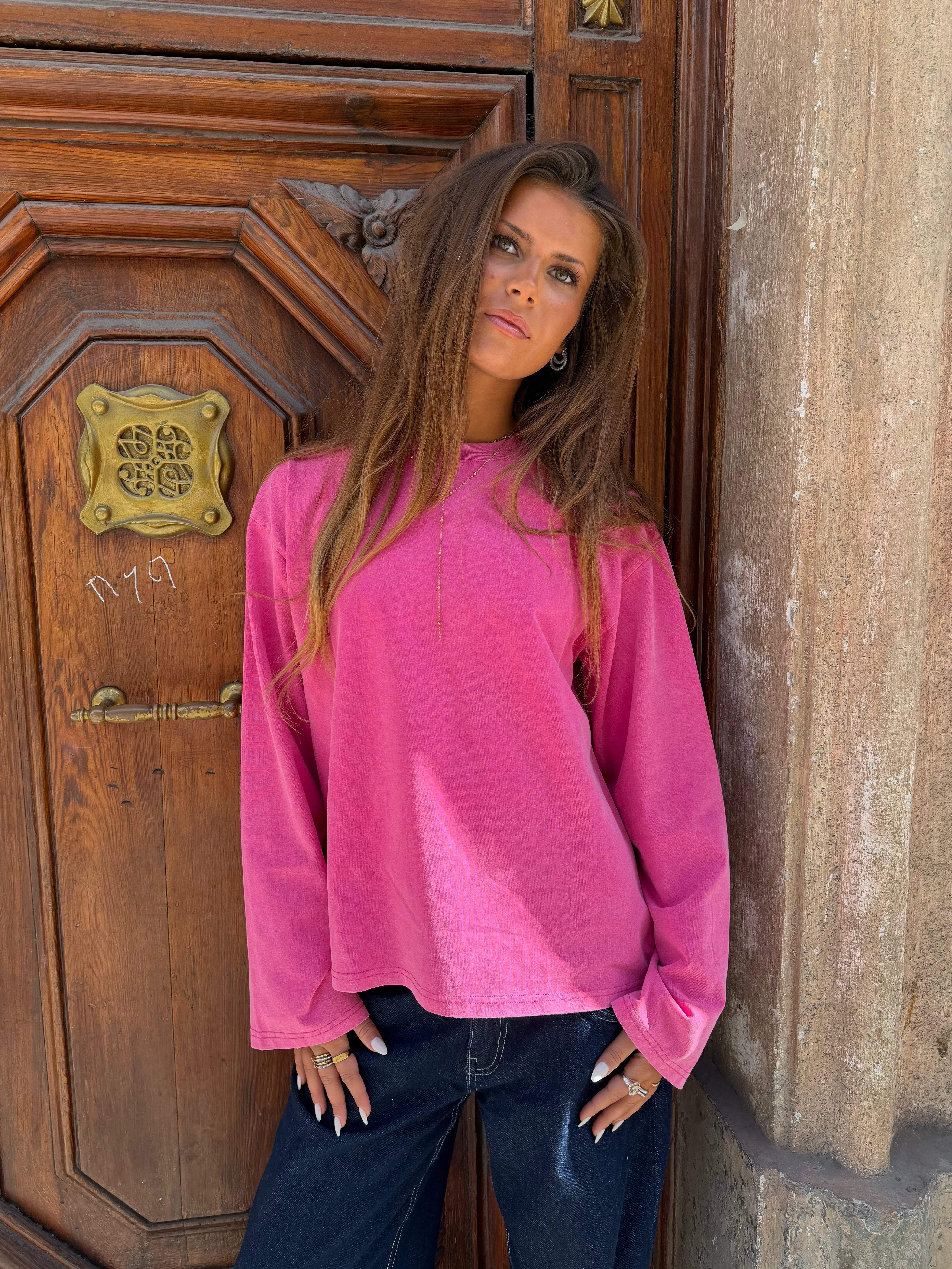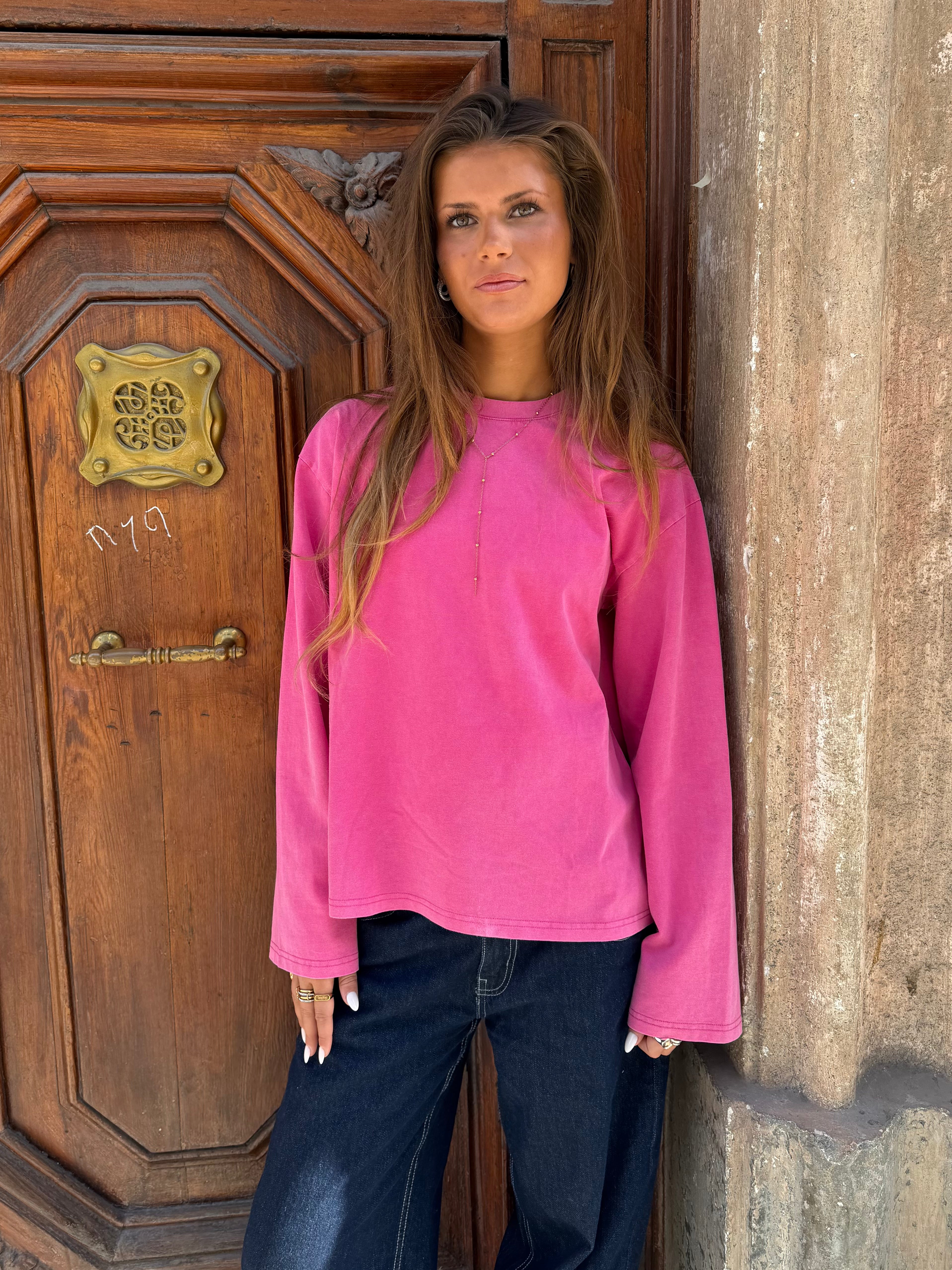 Fin oversize tee med lange ærmer i en vasket kvalitet, der giver et vintage look til dit outfit