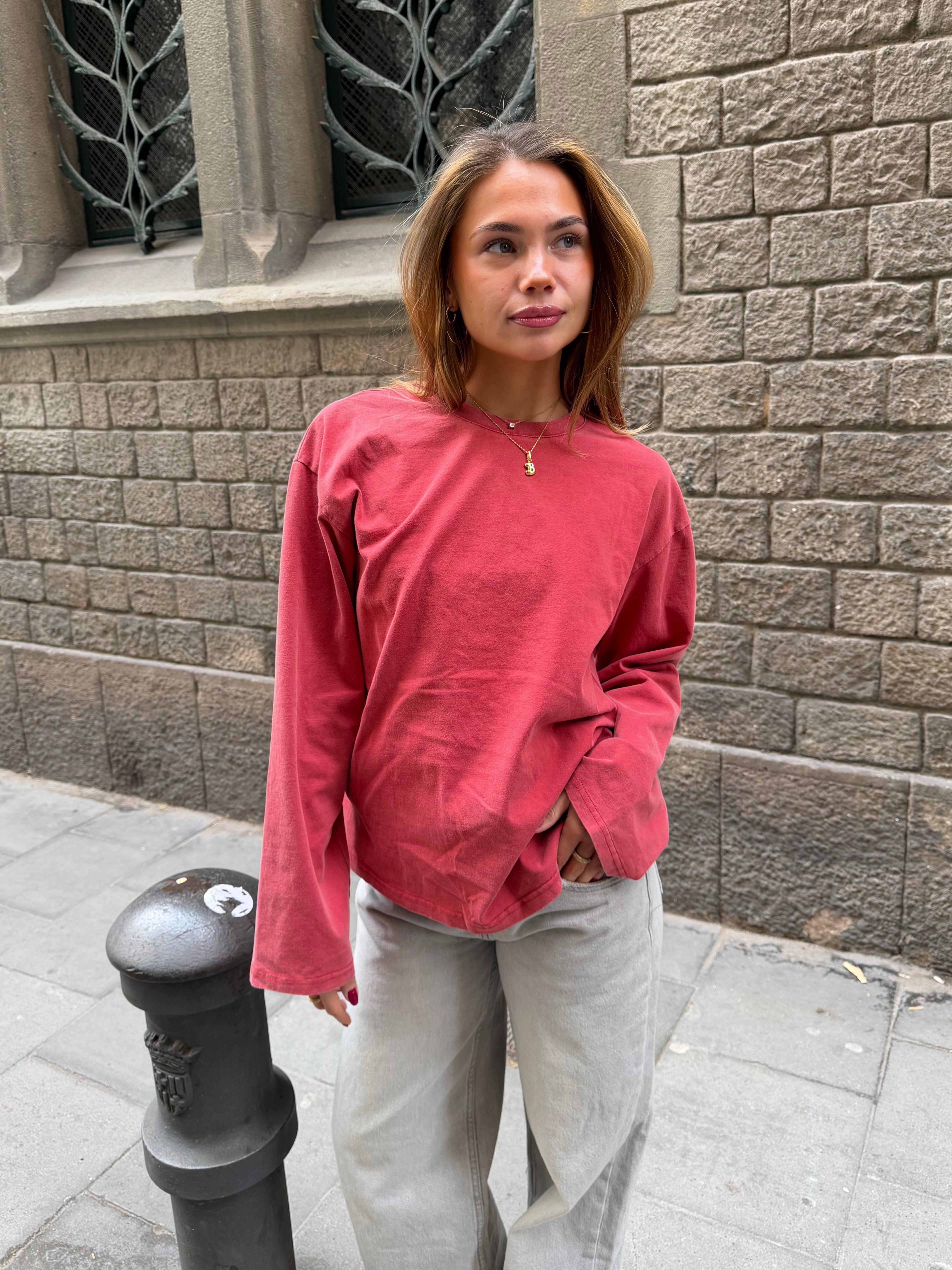 Fin oversize tee med lange ærmer i en vasket kvalitet, der giver et vintage look til dit outfit