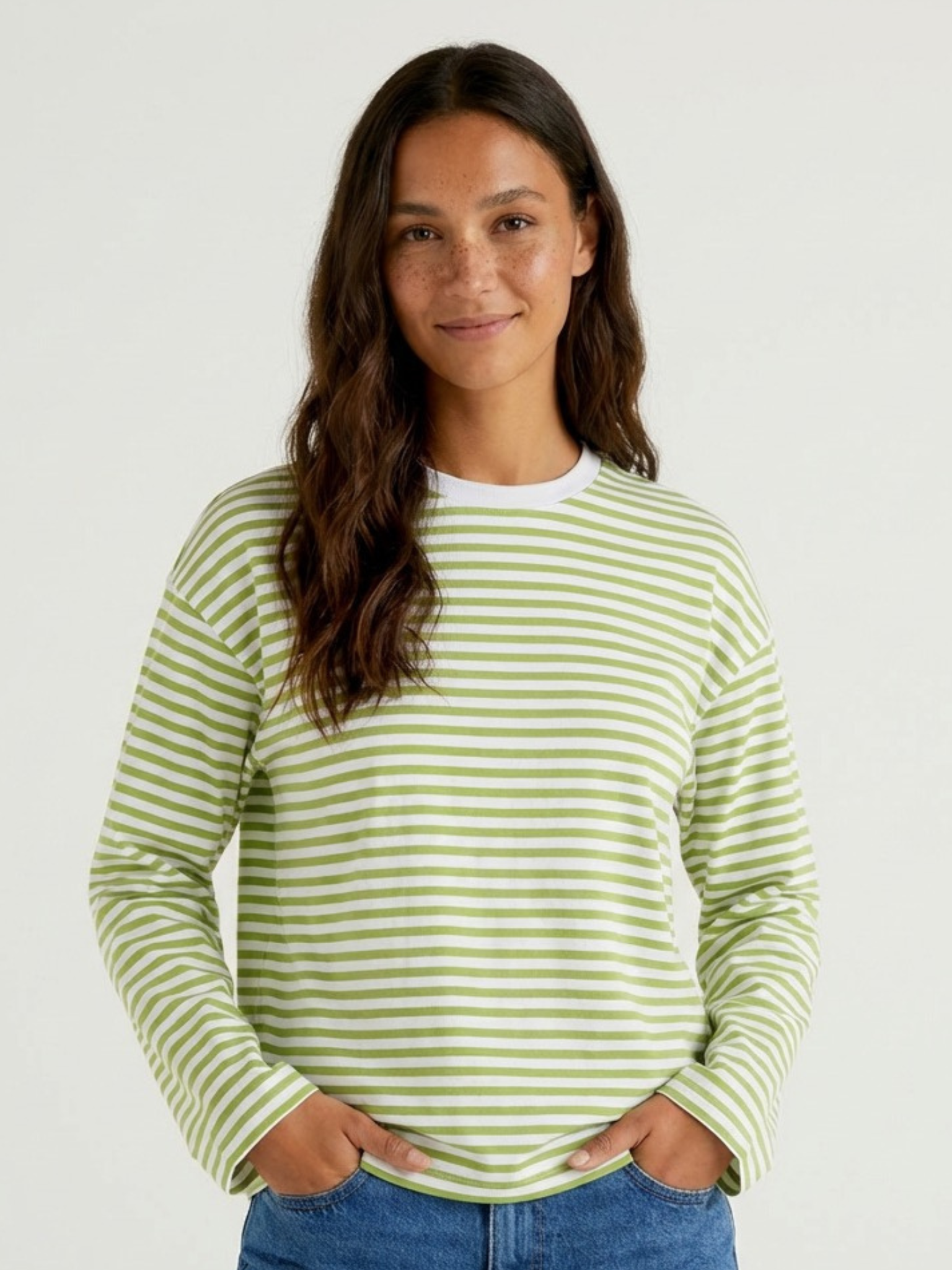 Dieses Oversize-T-Shirt mit Rundhalsausschnitt und langen Ärmeln bietet einen lässigen Look und ist daher den ganzen Tag über angenehm zu tragen. Die besondere Streifenstruktur entsteht durch das Einweben vorgefärbter Garne in den Stoff und erzeugt ein elegantes und zeitloses Muster. Es ist perfekt für legere Anlässe und verleiht Ihrer Garderobe einen smarten, schlichten Touch.