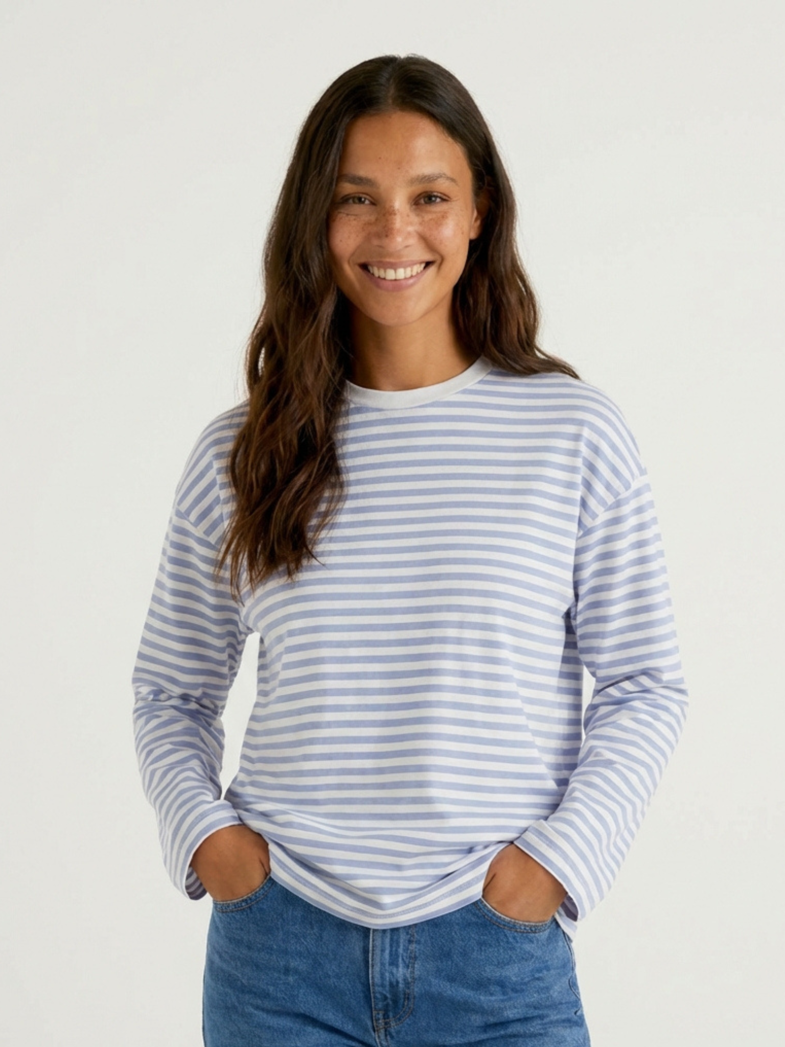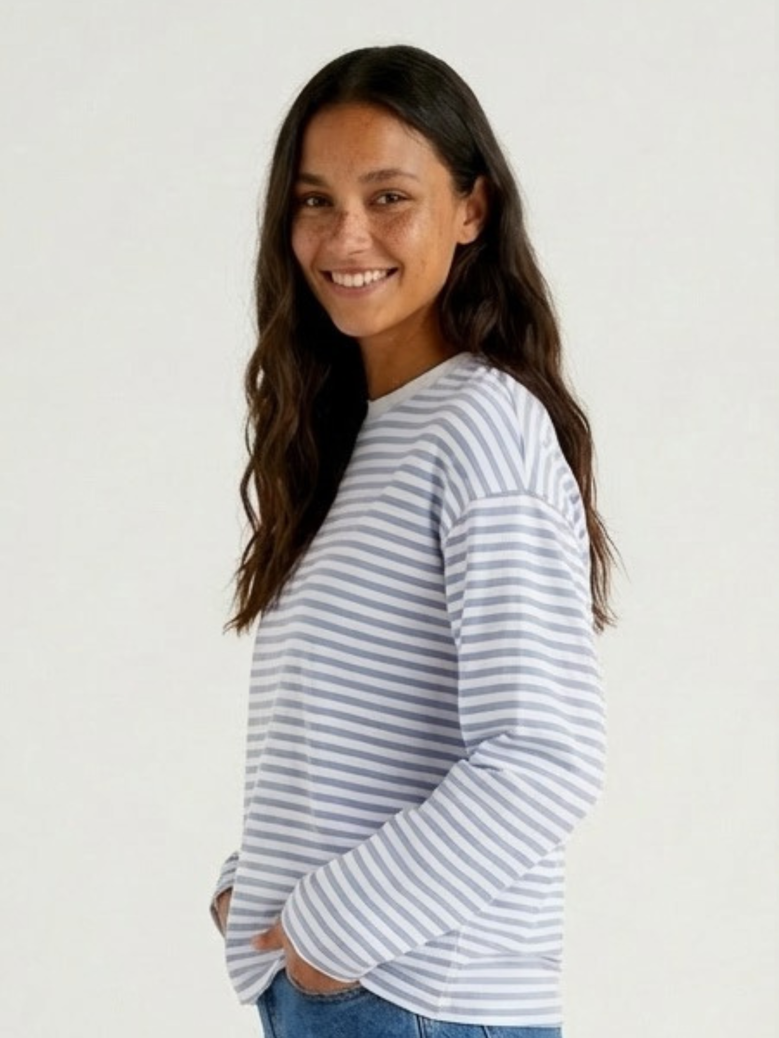 SADIE STRIPE TEE LS - CLOUD DANCER / CASHMERE BLUE