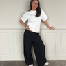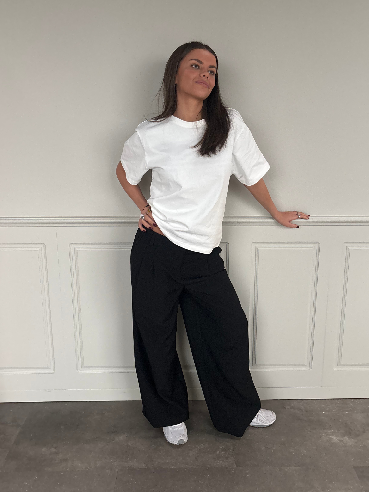 Velkommen til vores helt nye suit pant, der er bredere end vores bestseller suit pant Bella. Stadig low-waist, stadig lækker blød og med to sidelommer - perfekt til skole, fest og alt derimellem..
