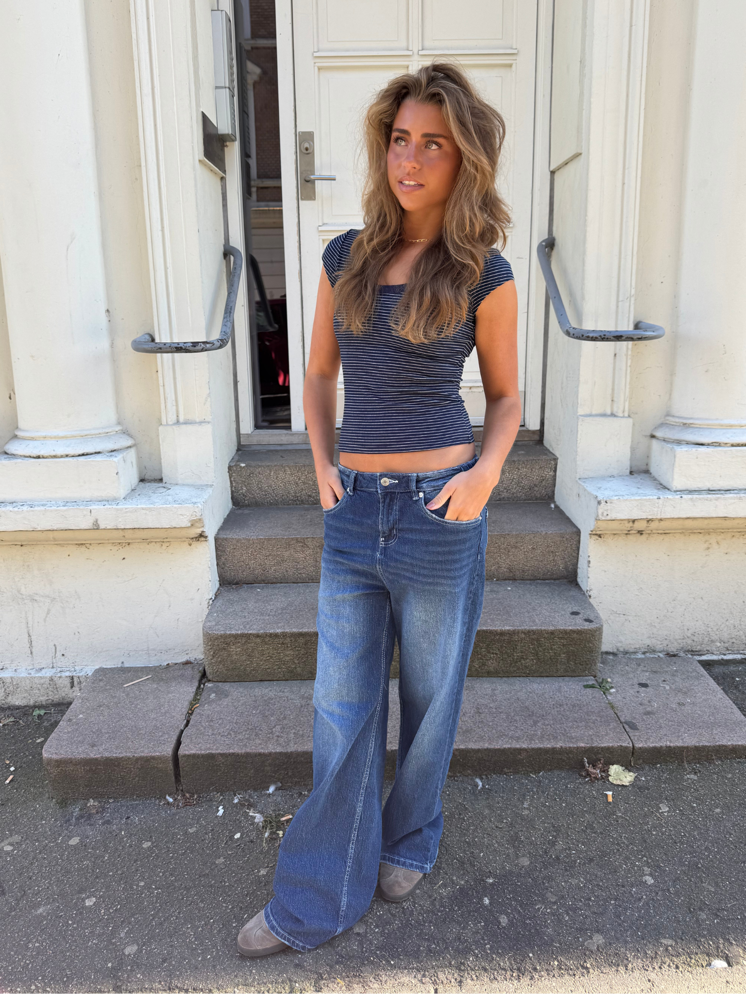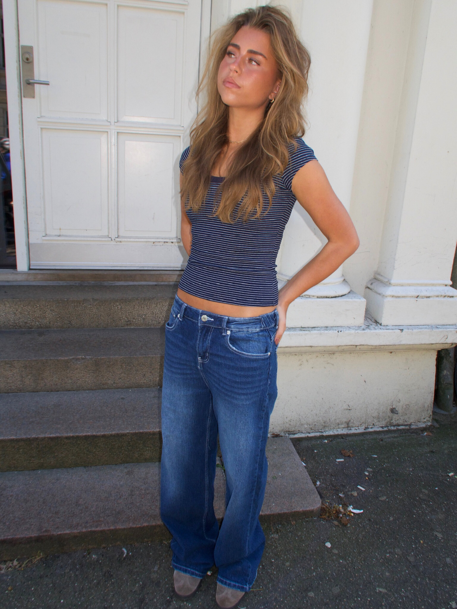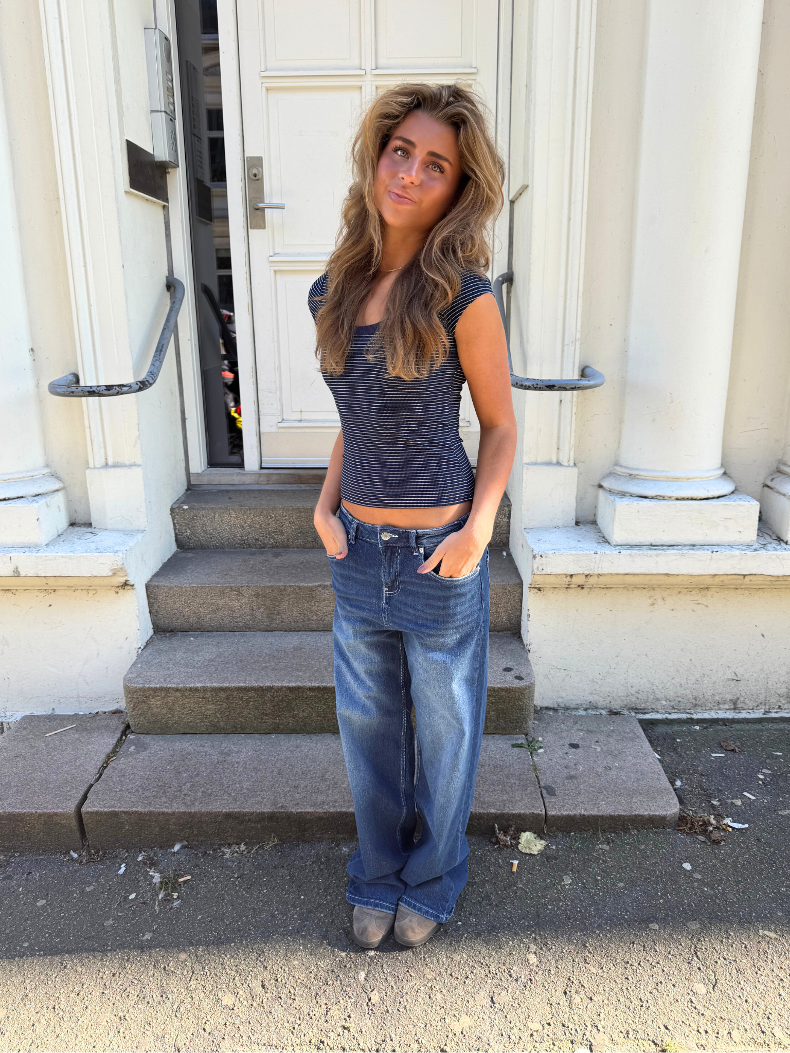 Få det perfekte trendy look med ALMA JEANS - DARK BLUE! 👖 Disse populære jeans er baseret på vores populære baggy Esther jeans - bare med en lidt højere talje...