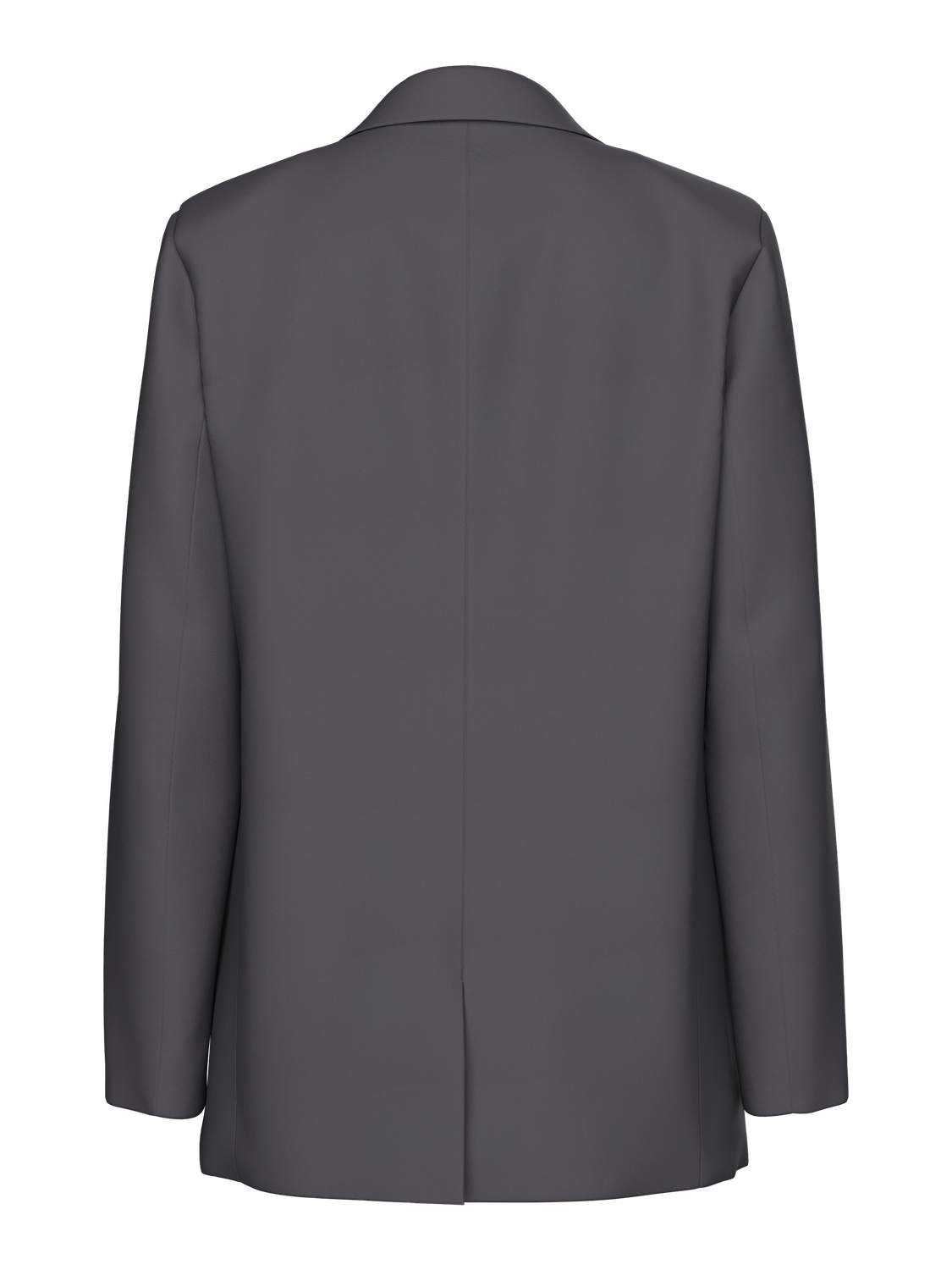 Denne loose blazer kombinerer et oversize fit med en moderne silhuet og en klassisk spread collar. Den er fremstillet i en blød og let strækbar kvalitet, hvor 50% af materialet består af genanvendt polyester, hvilket gør den både stilfuld og bæredygtig. Blazeren har praktiske sidelommer og en foring i genanvendt polyester, som sikrer ekstra komfort. Farven Magnet er en dyb, mørk grå nuance, der nemt kan styles med både casual og mere formelle outfits.