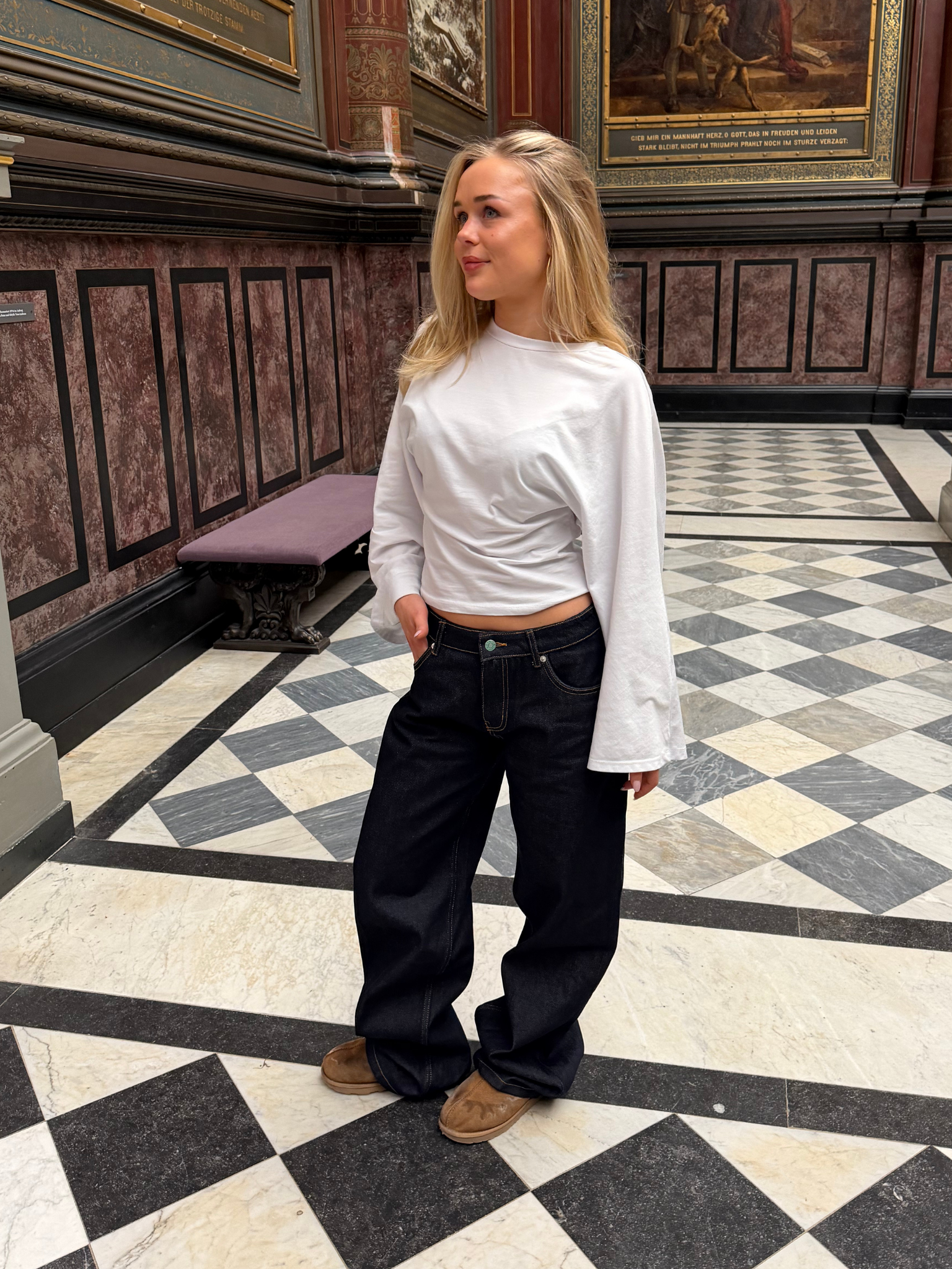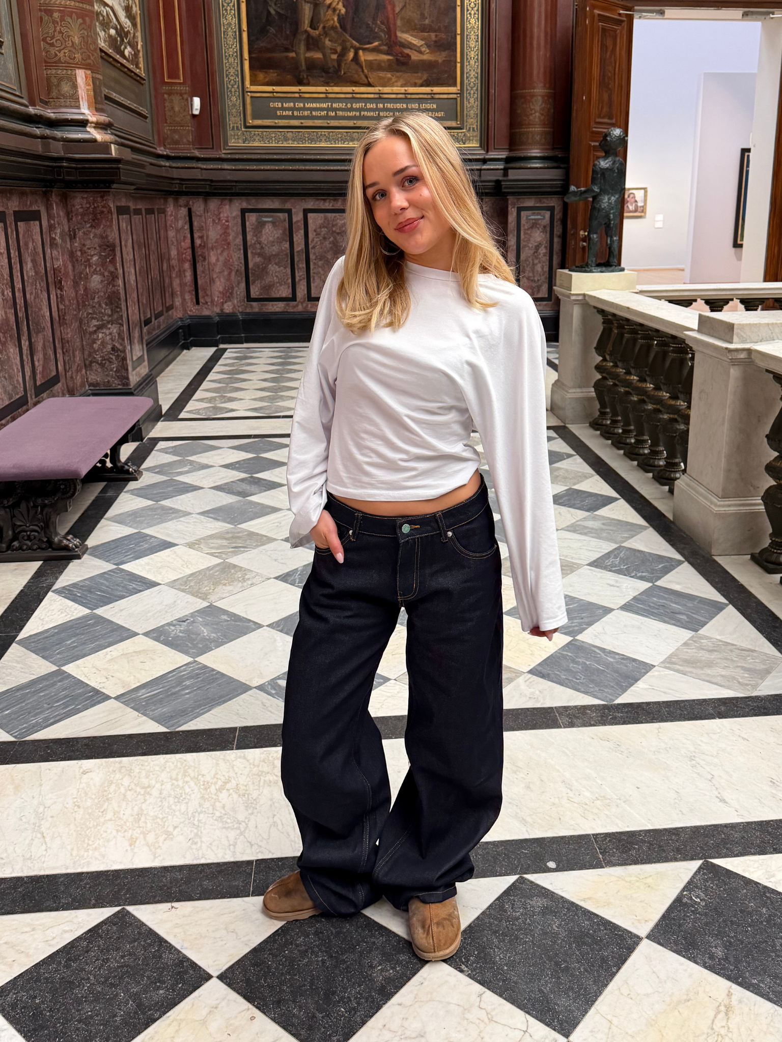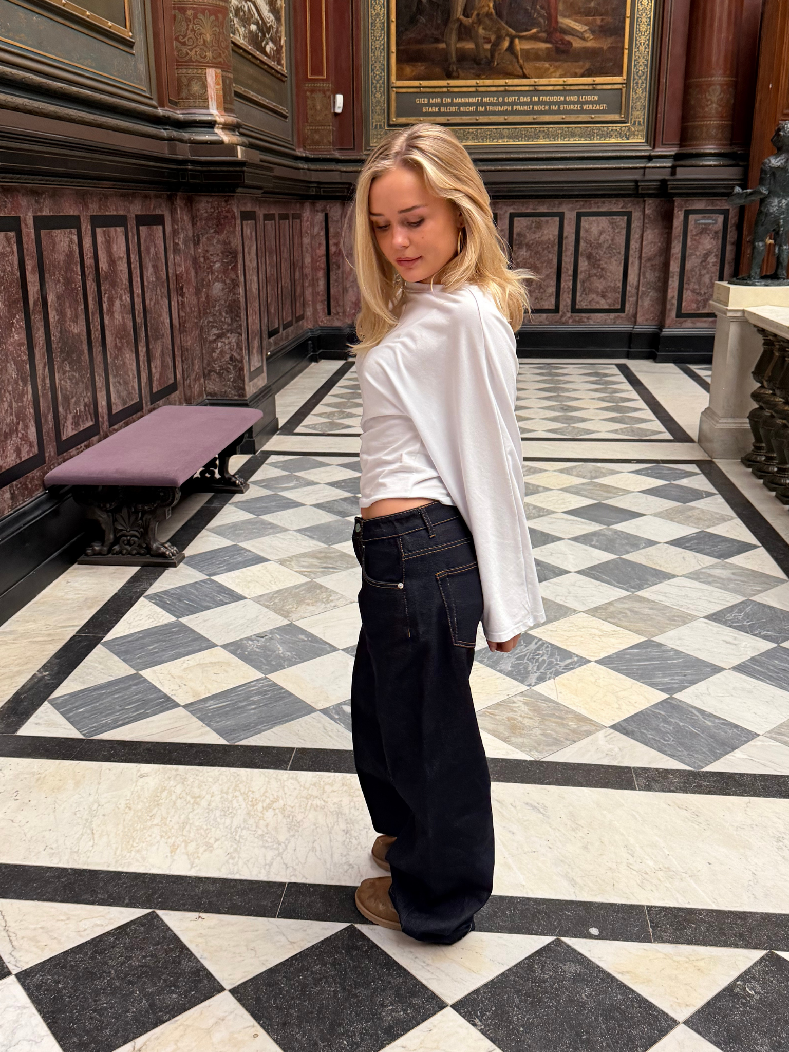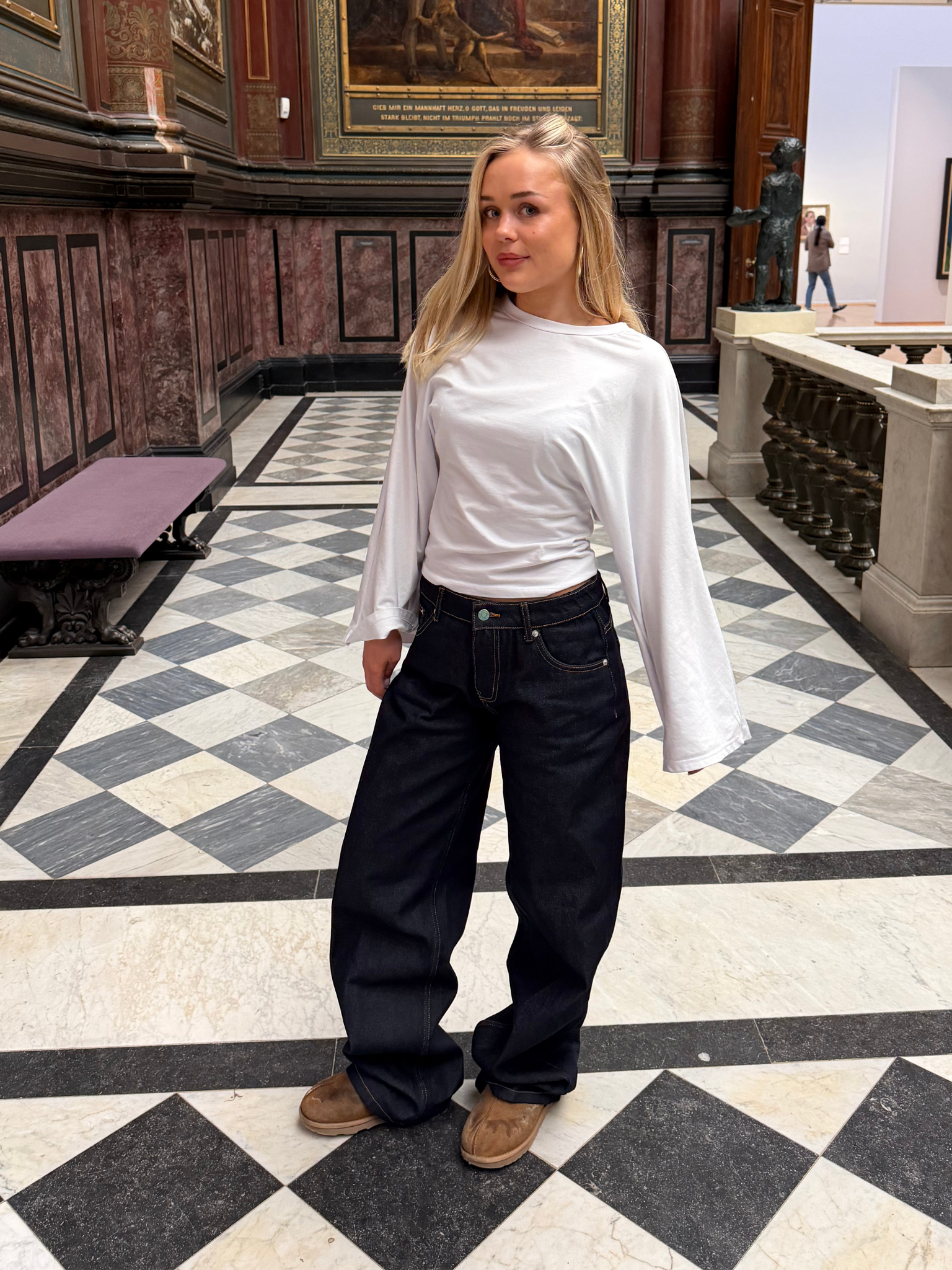 Disse virale jeans kombinerer den perfekte baggy pasform med en lav talje og en flot mørk blå farve, som passer til alle dine yndlingsoutfits. Fremstillet i en blød bomuldskvalitet, der føles fantastisk hele dagen. Disse populære jeans er et must-have for enhver, der elsker en afslappet og moderne stil!