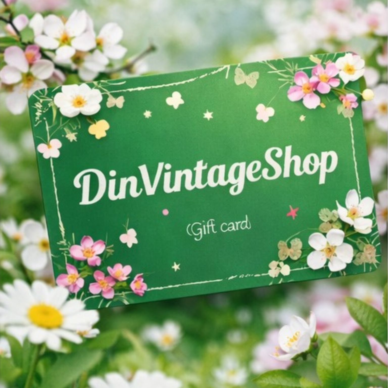 Du kan her købe et gavekort til DinVintageShop. Det fungerer sådan at når du køber dette gavekort, så tilsender vi dig automatisk en kode via mail som kan bruges med det samme - på vores hjemmeside til at købe produkter.