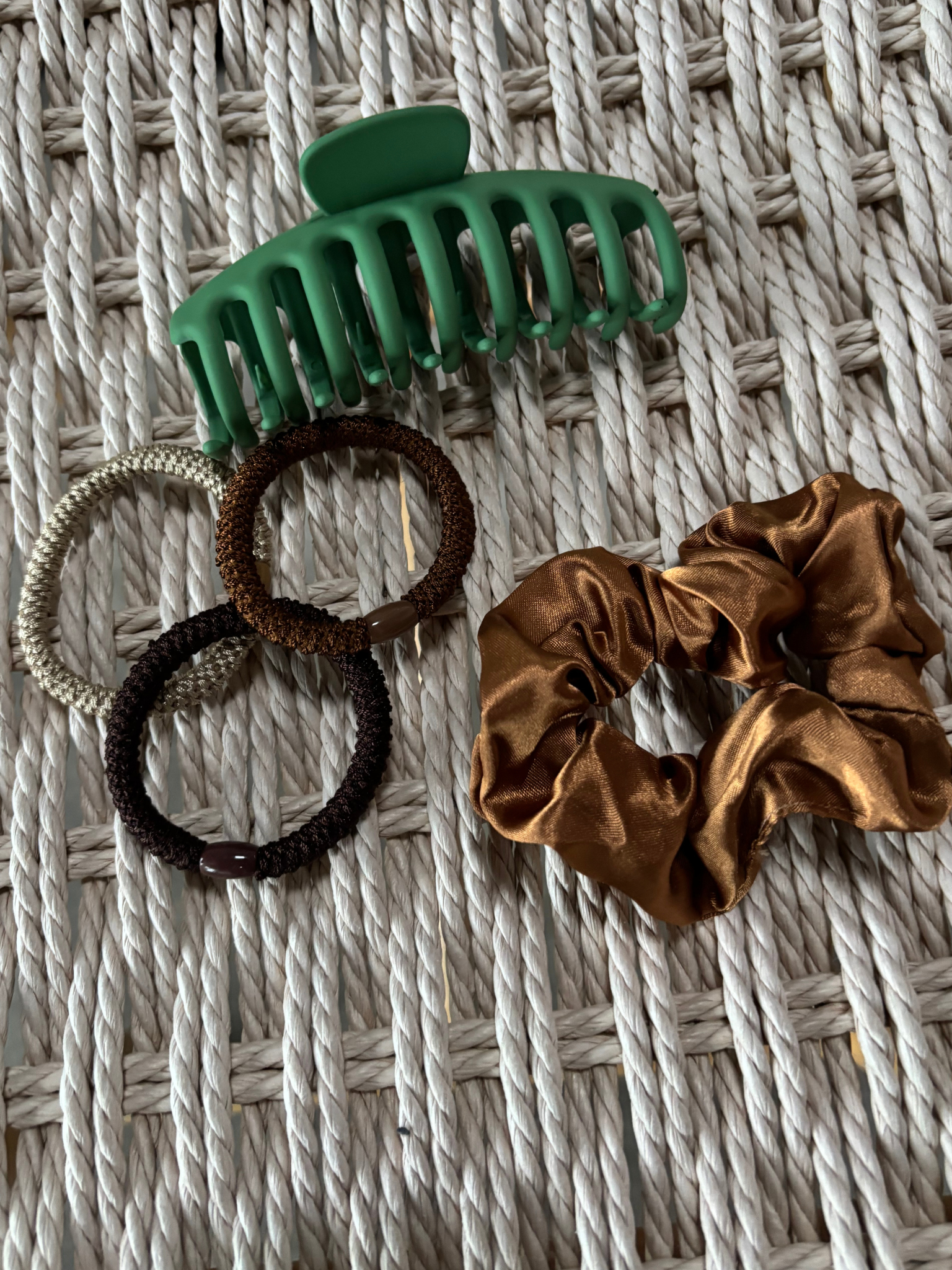 Fine accessories til håret. Inkluderer 3 hårelastikker, 1 hårklemme & 1 scrunchie