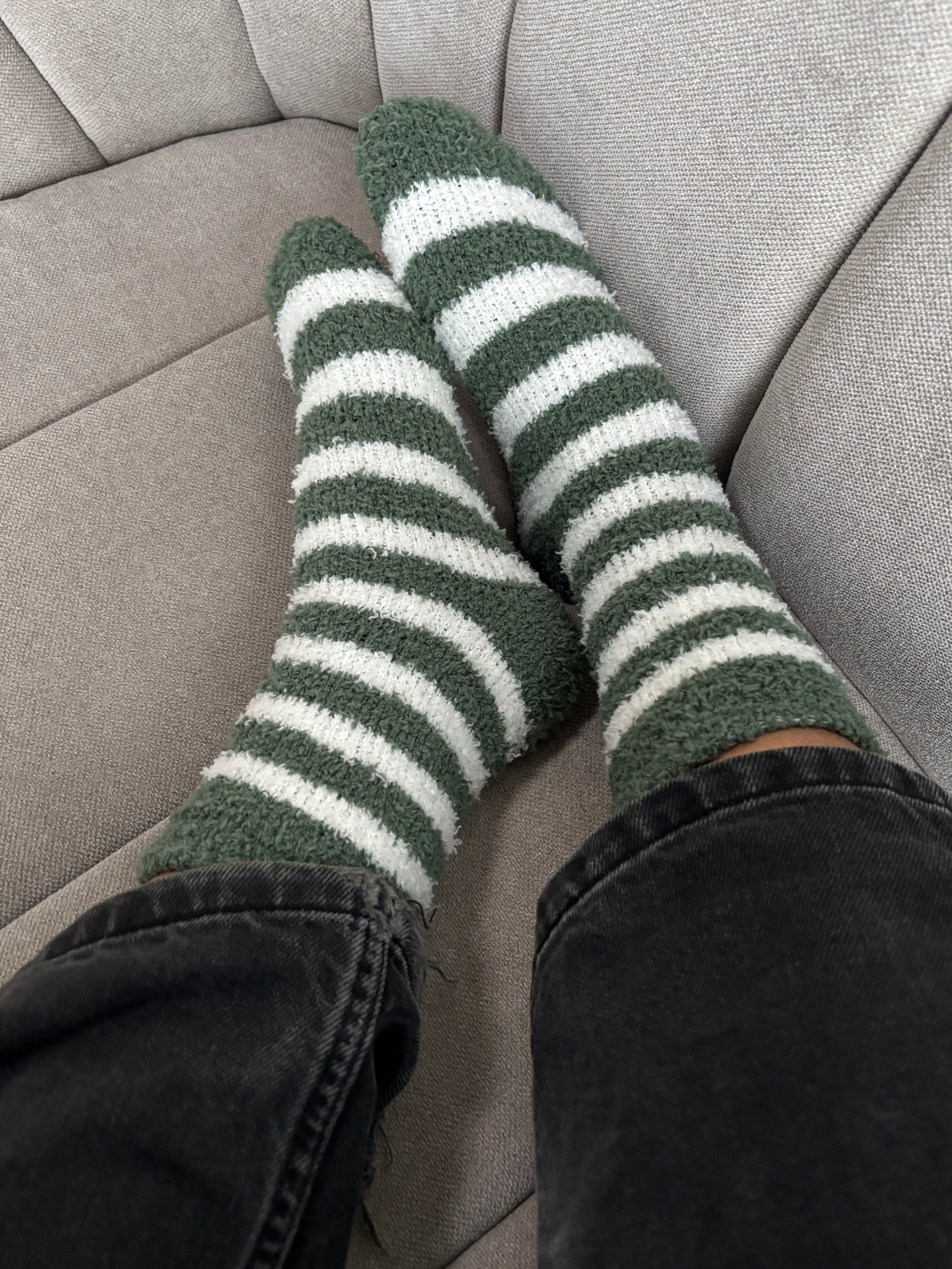 Fineste hyggestrømper i grøn/hvid