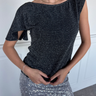 Fin asymmetrisk off-the-shoulder top i sort/sølv glitter