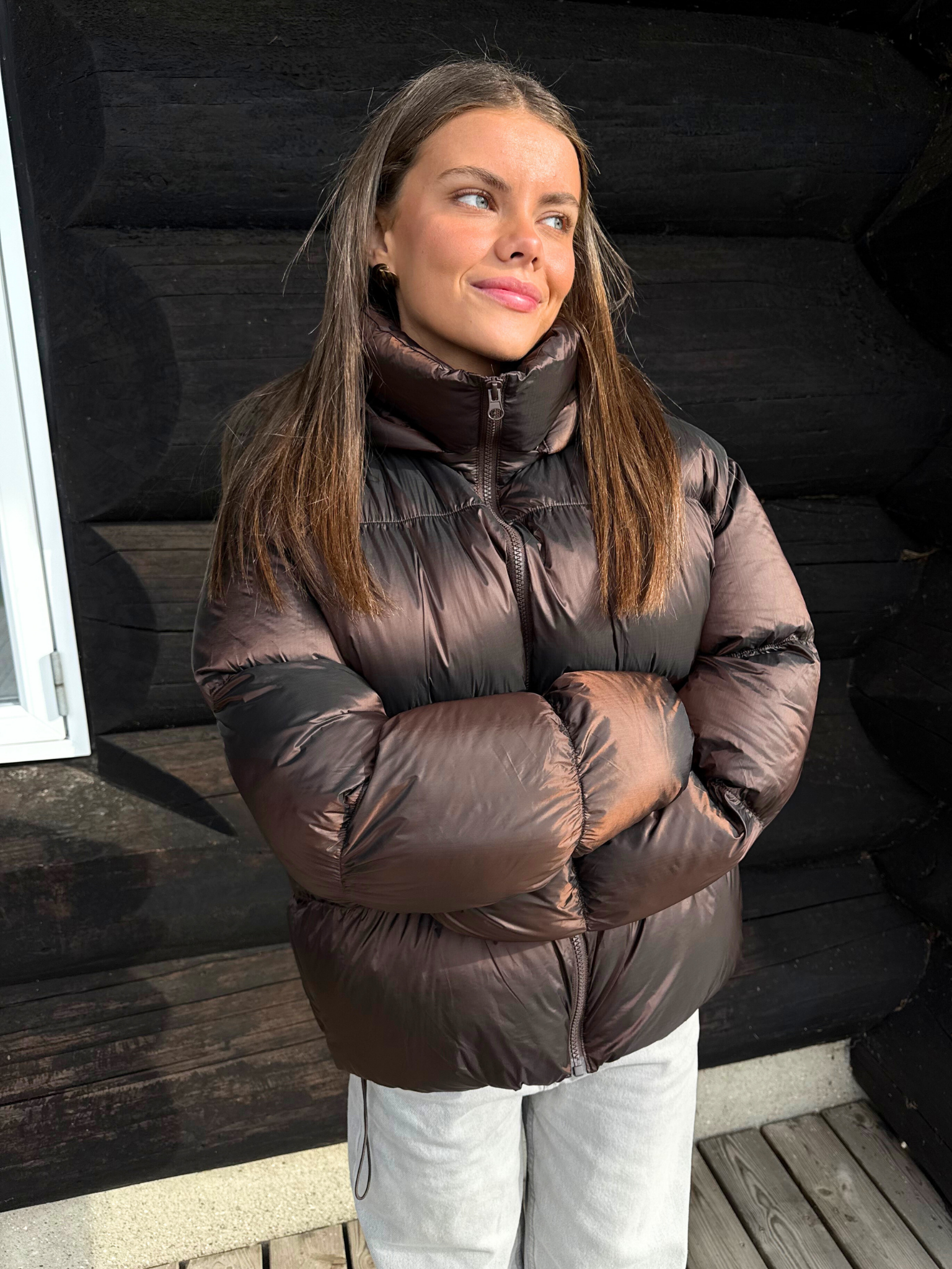 MILLA SHINY PUFFER JACKET - HOT FUDGE