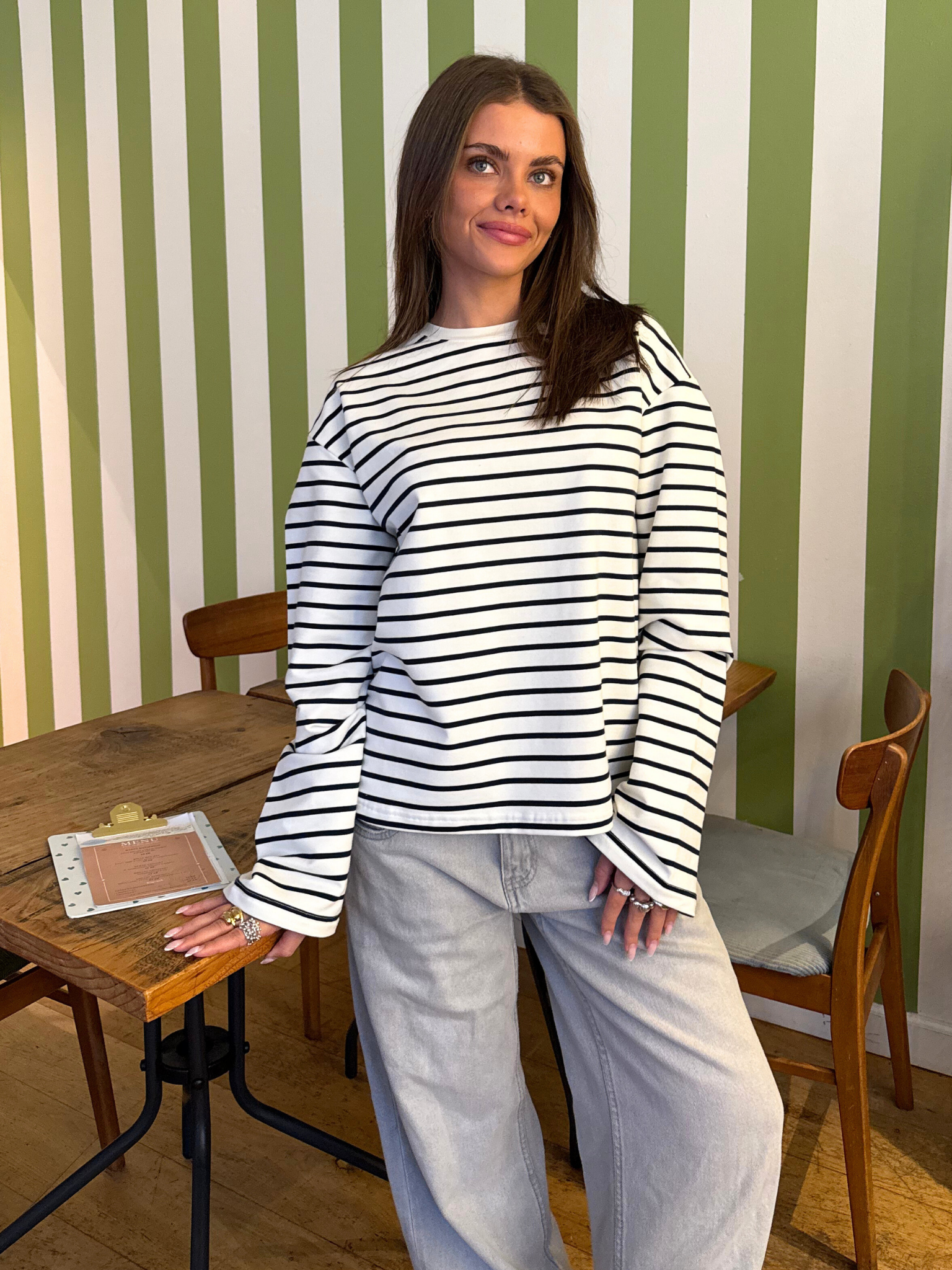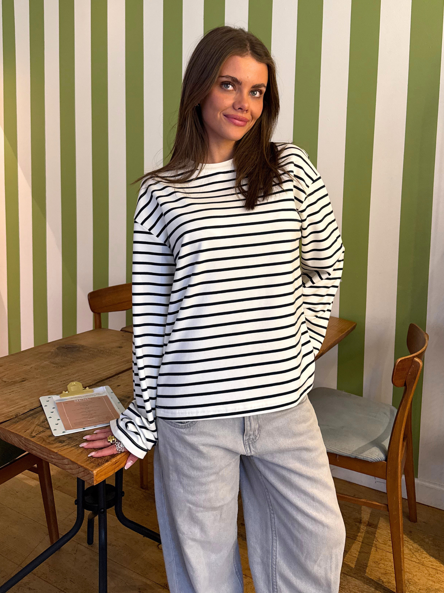 Fin oversize tee i stripet med lange ærmer