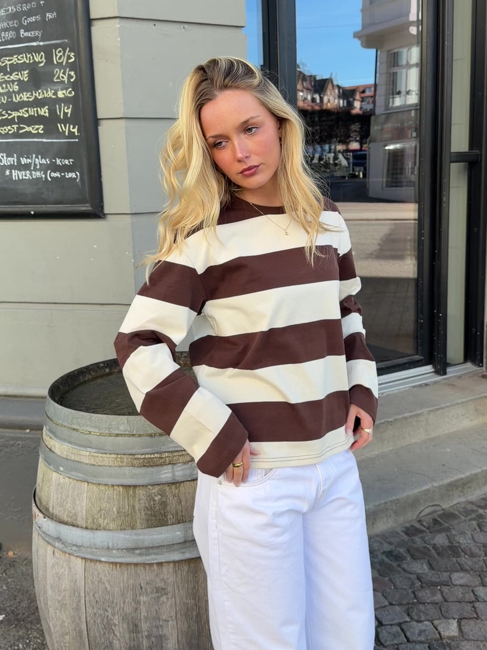 MYNTE WIDE STRIPE - BROWN/OFF WHITE