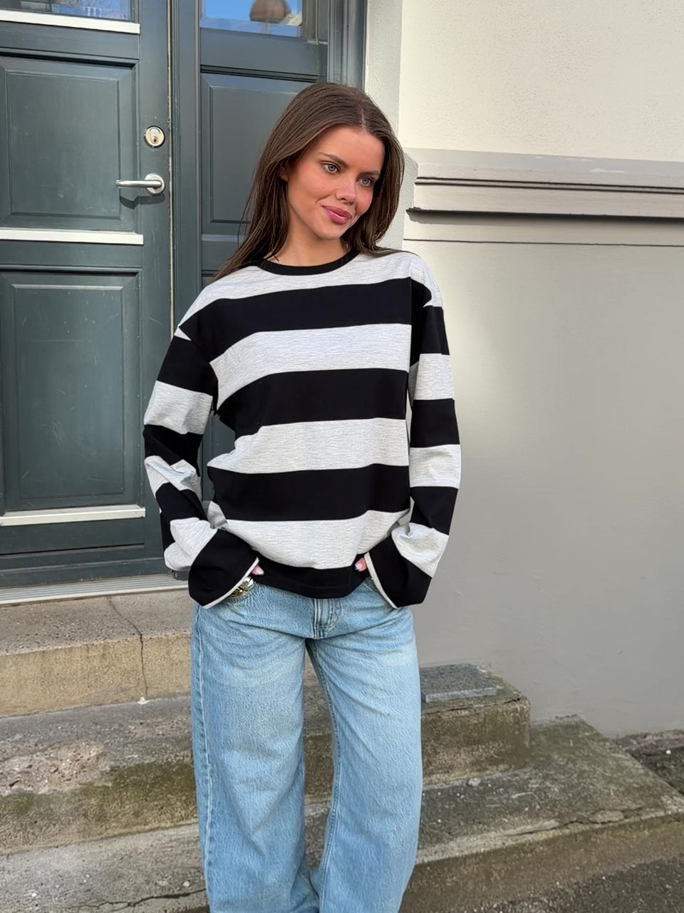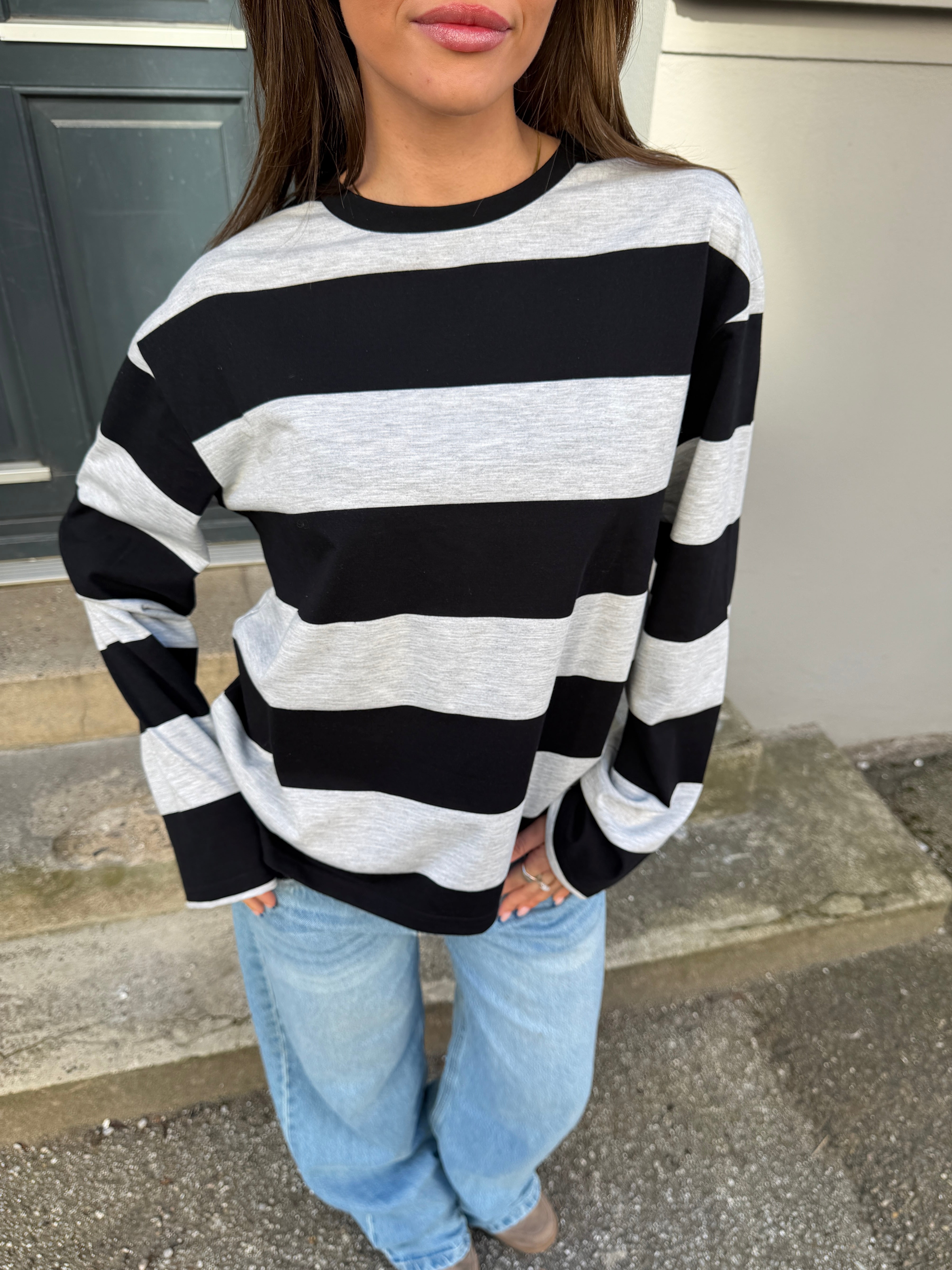 Fin oversize stribet tee med lange ærmer