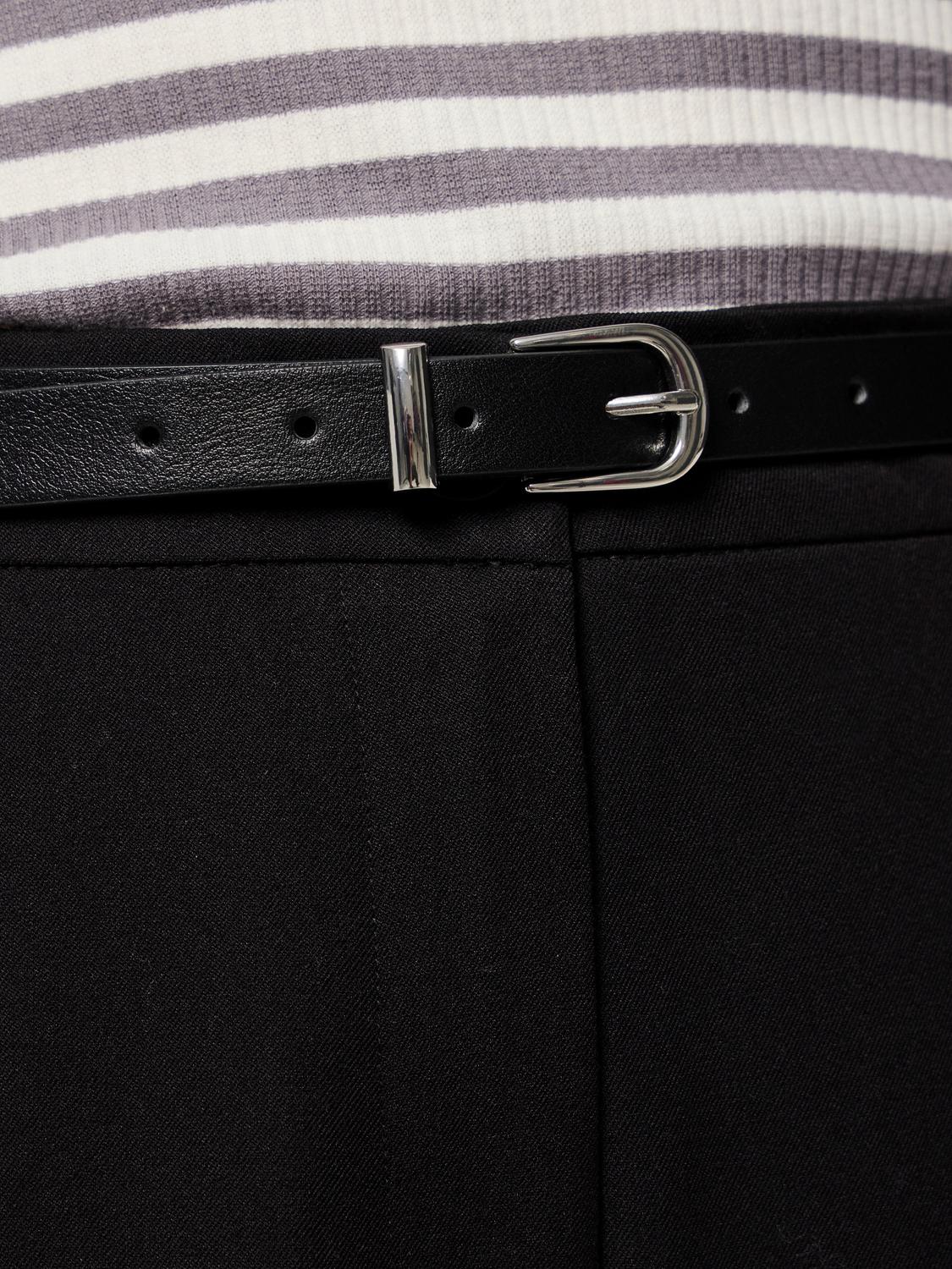 Dette elegante slim bælte er designet til at binde dit look sammen med både praktisk funktion og stilfuldt udtryk. Bæltet er lavet i polyester, der er coated med et lag polyurethan, hvilket giver det en let og vandafvisende kvalitet, perfekt til daglig brug. Den sølvfarvede spænde tilføjer et diskret detalje, som understreger bæltets moderne karakter.