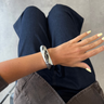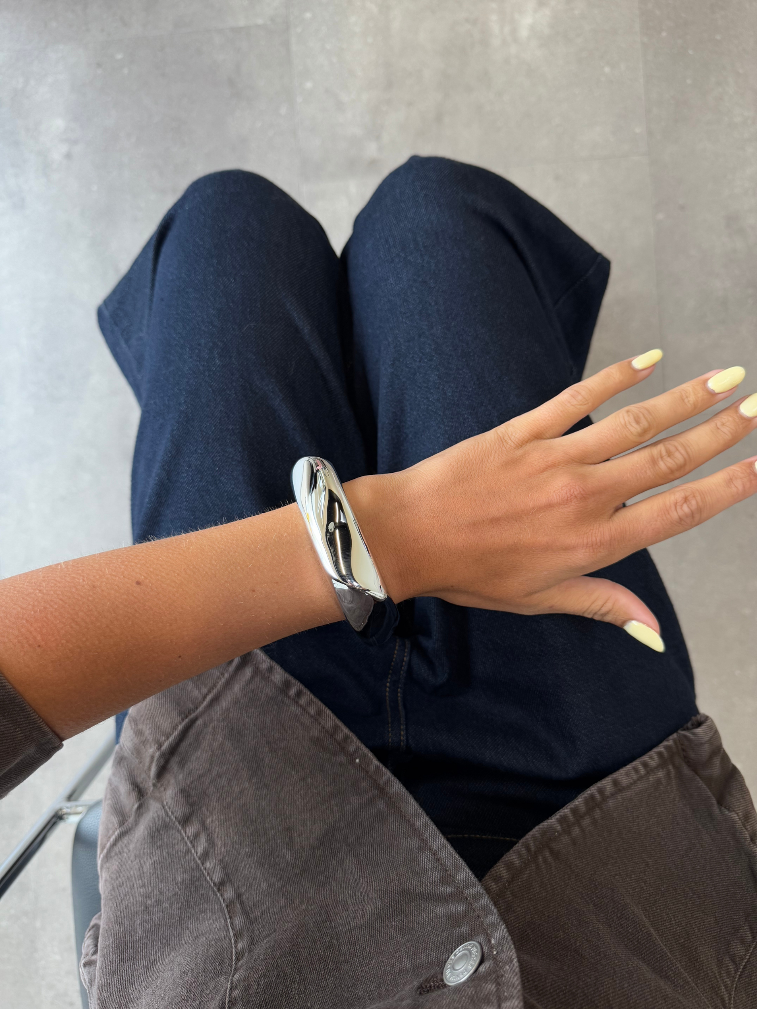 Dette armbånd i sølvfarvet epoxy er et elegant og enkelt tilbehør, der passer til en ungdommelig og afslappet stil. Armbåndet har en one-size størrelse og er fremstillet af 100% epoxy, hvilket giver det et moderne og stilrent finish. Det er et smukt smykke, der kan bruges alene eller kombineres med andre accessories for et personligt udtryk.
