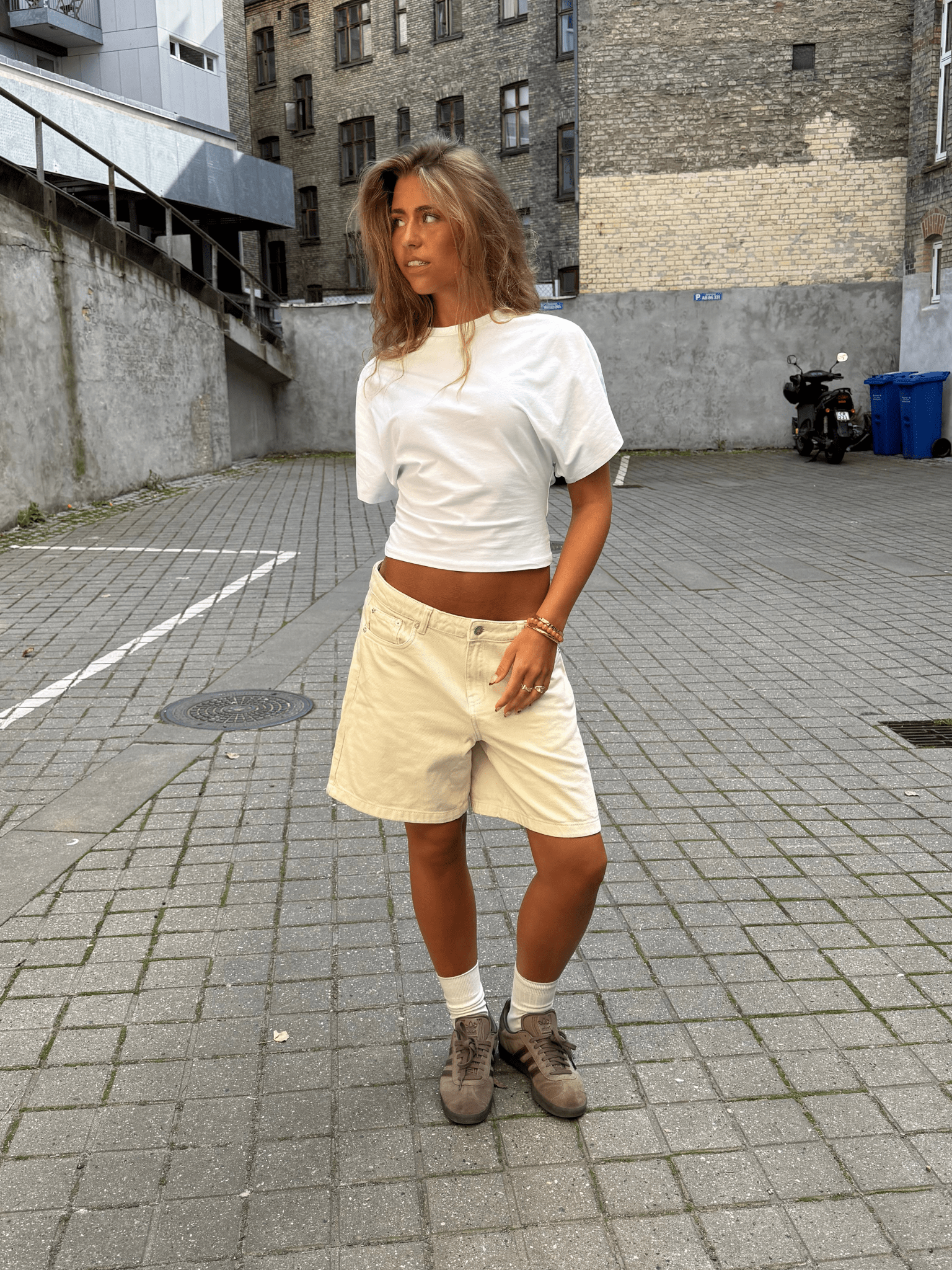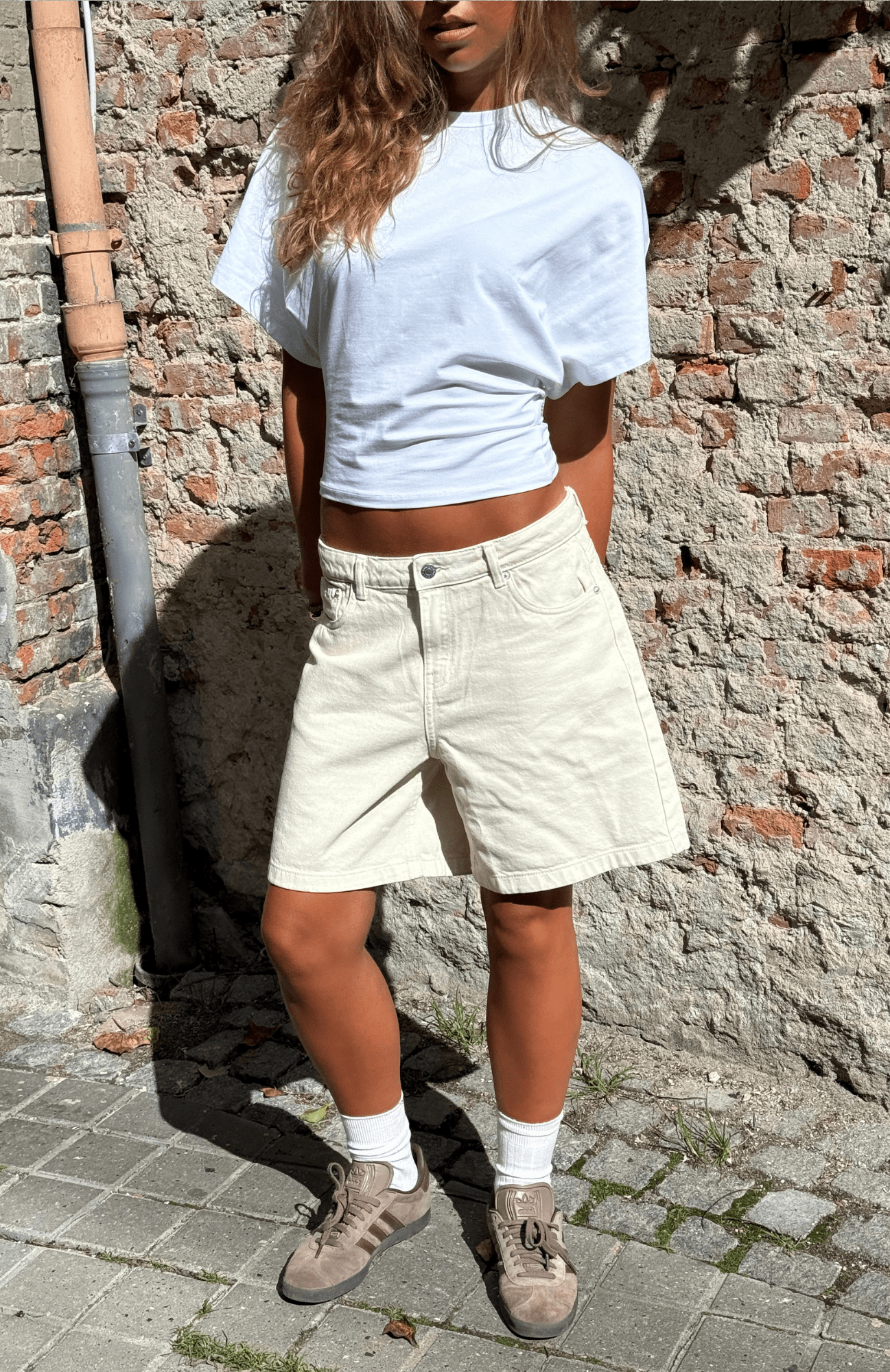 Vi har designet de smukkeste baggy Olivia off white jorts som har taget os sindsygt lang tid at perfektionere! Nu er de klar til at lufte dine brune sommerben