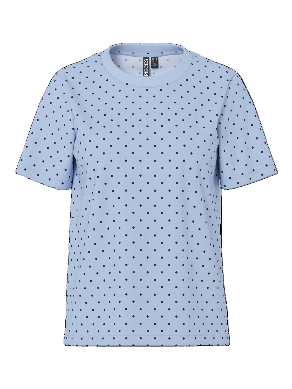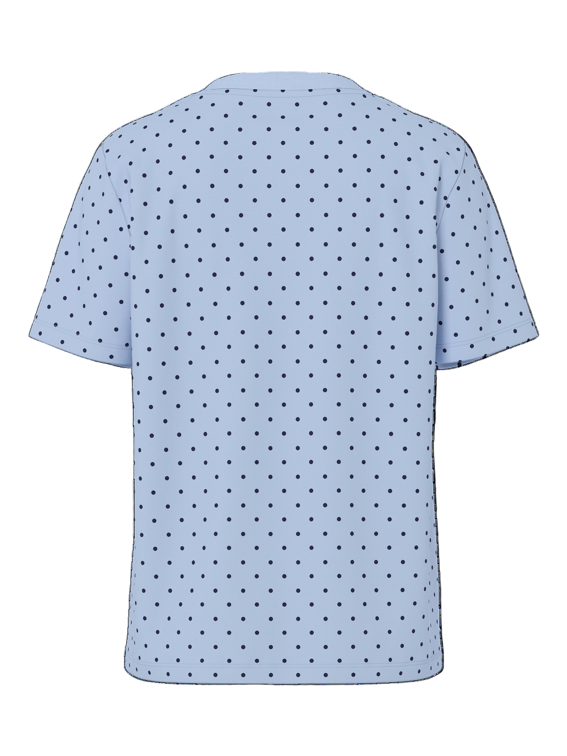 Den lette og behagelige Dot Tee er perfekt til hverdagens afslappede stilarter. Med sin runde hals og korte ærmer har den et klassisk og tidløst snit, der passer til de fleste lejligheder. Den maritime blå farve er prydet med et diskret all-over print af små prikker, som tilføjer et stilfuldt og feminint touch. Fremstillet i 100% bomuld tilbyder denne t-shirt både komfort og åndbarhed, hvilket gør den ideel til dagligt brug.