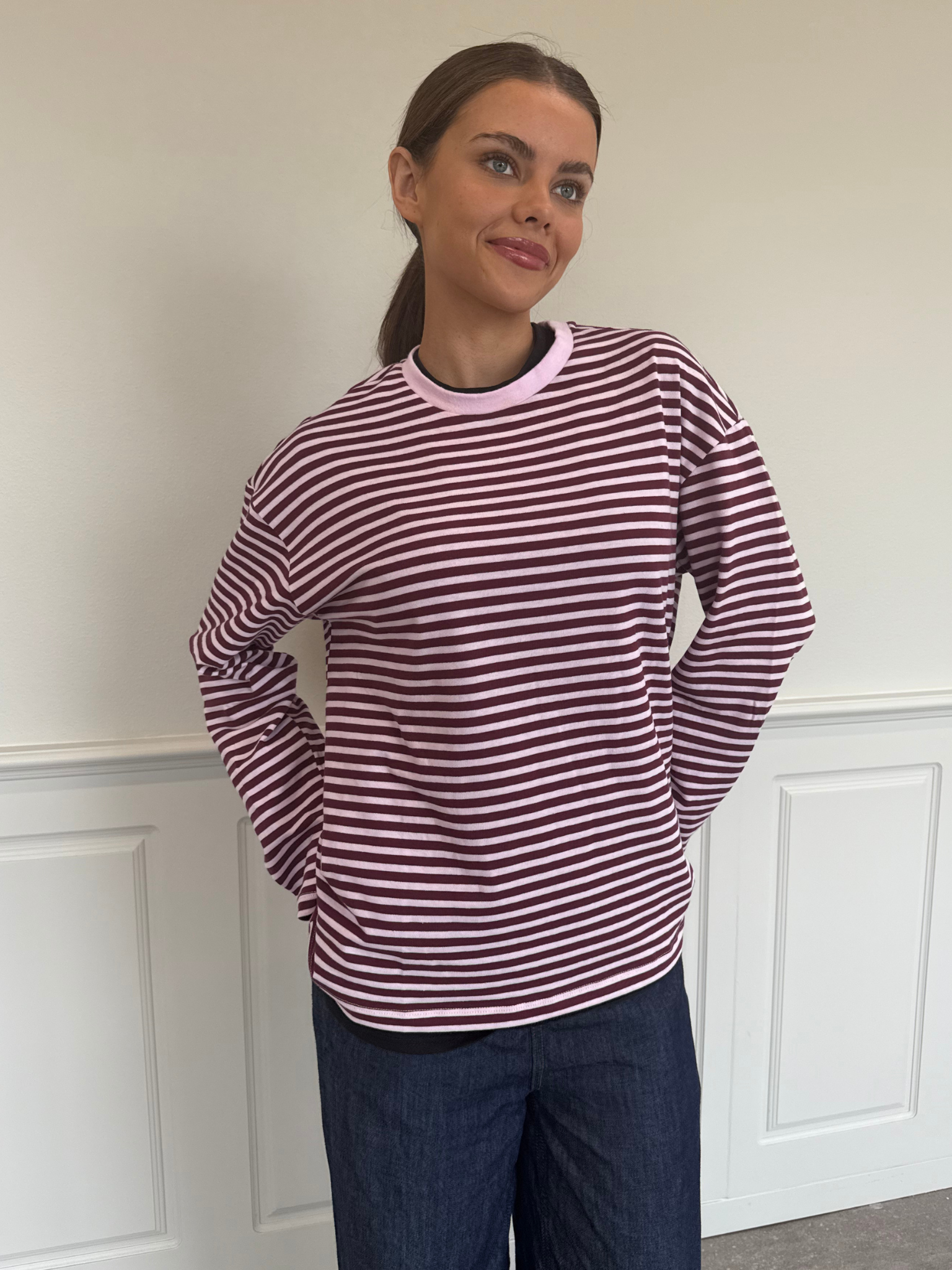 Hjem / SADIE STRIPE TEE LS - TAWNY PORT ROSEATE SPOONBILL