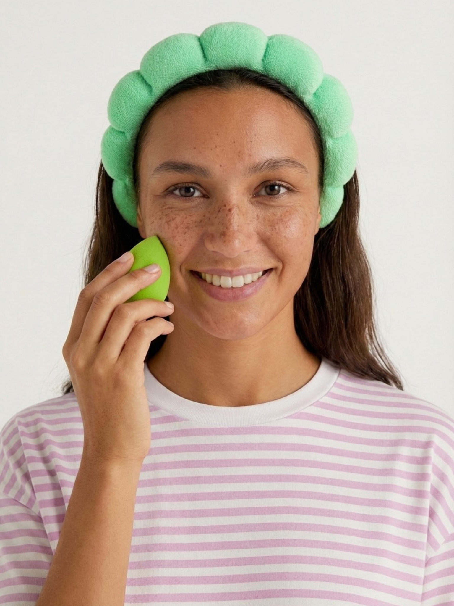 Sødt lille selfcare-sæt. Inkluderer 3 beautyblenders, 1 skumpandebånd & 1 ark stjernesticker