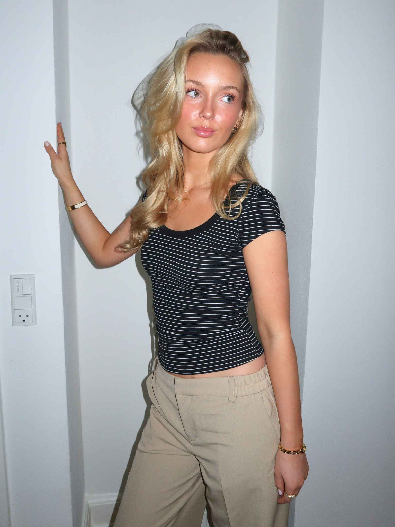 THEA KORTÆRMET T-SHIRT - BLACK/WHITE